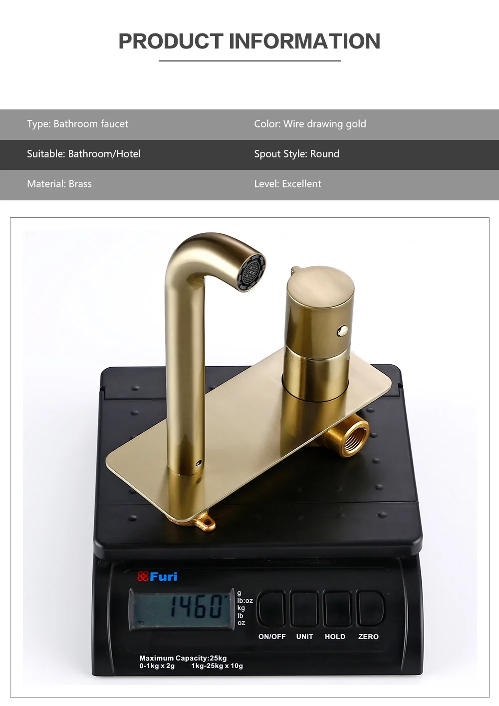 Introducing the Smesiteli Bathroom Vanity Sink Faucet, a masterpiece of design and engineering crafted to bring unparalleled elegance to your personal sanctuary. This wall-mount mixer tap, resplendent in a luxurious brushed gold finish, redefines modern bathroom aesthetics. It's more than just a faucet; it's a statement piece that combines sophisticated style with exceptional functionality, promising to transform your daily routine into an experience of pure indulgence. Experience the perfect blend of form and function with this exquisite addition to your bathroom.