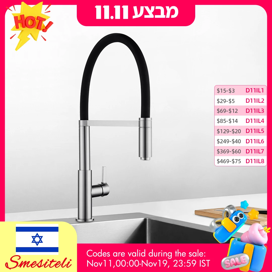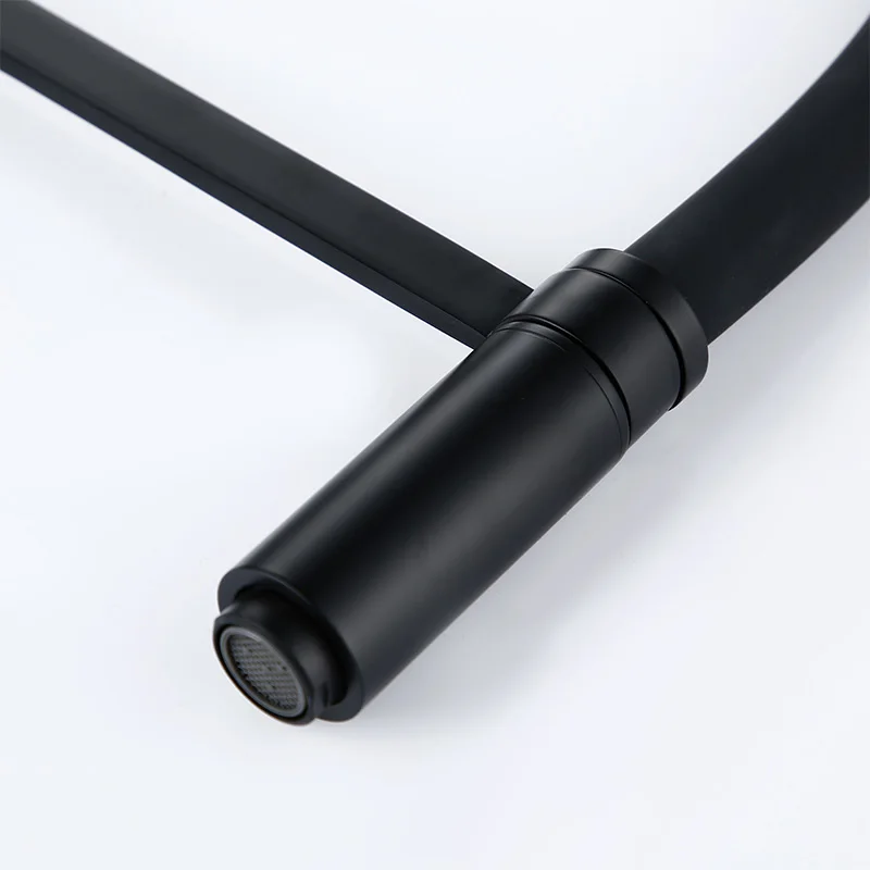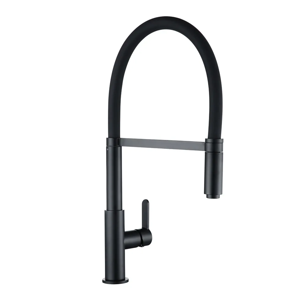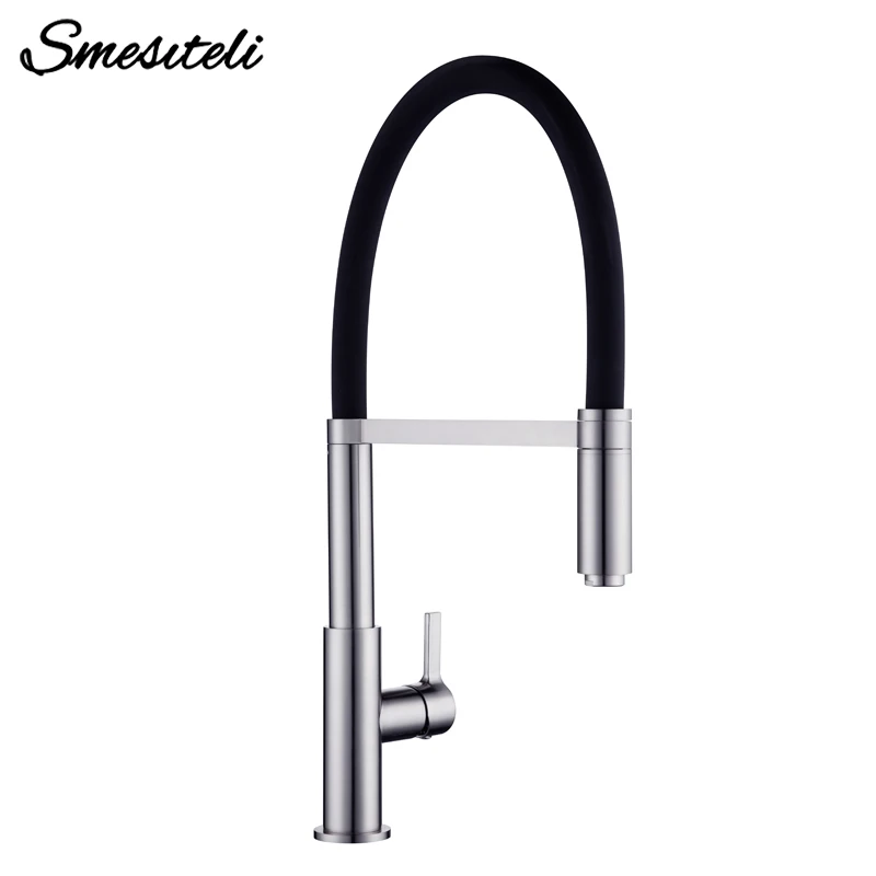 Smesiteli Kitchen Faucets Round Matte Black Brass Single Handle Single Hole 360 Degree Swivel Mixer Sink Tap Pull Out Down Taps