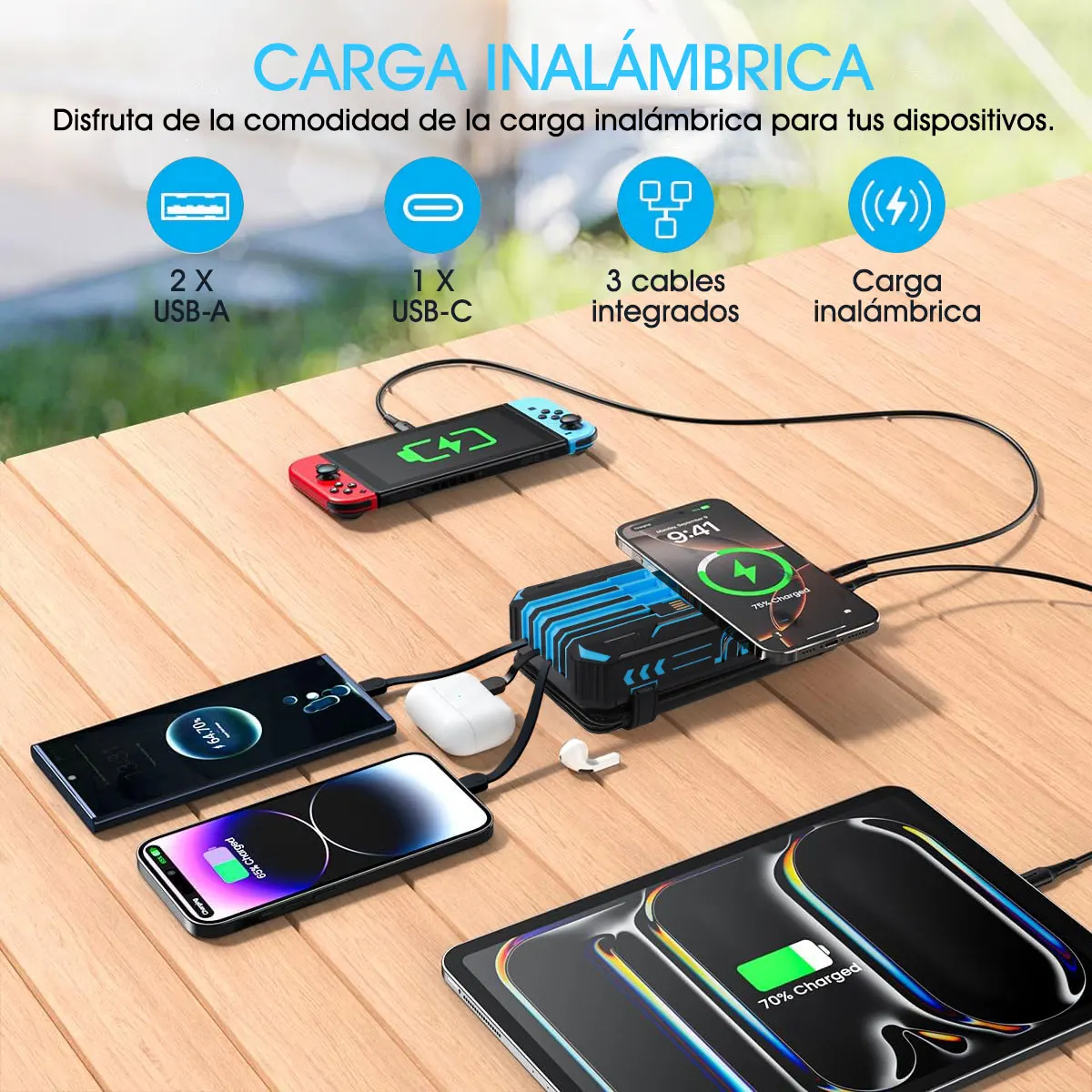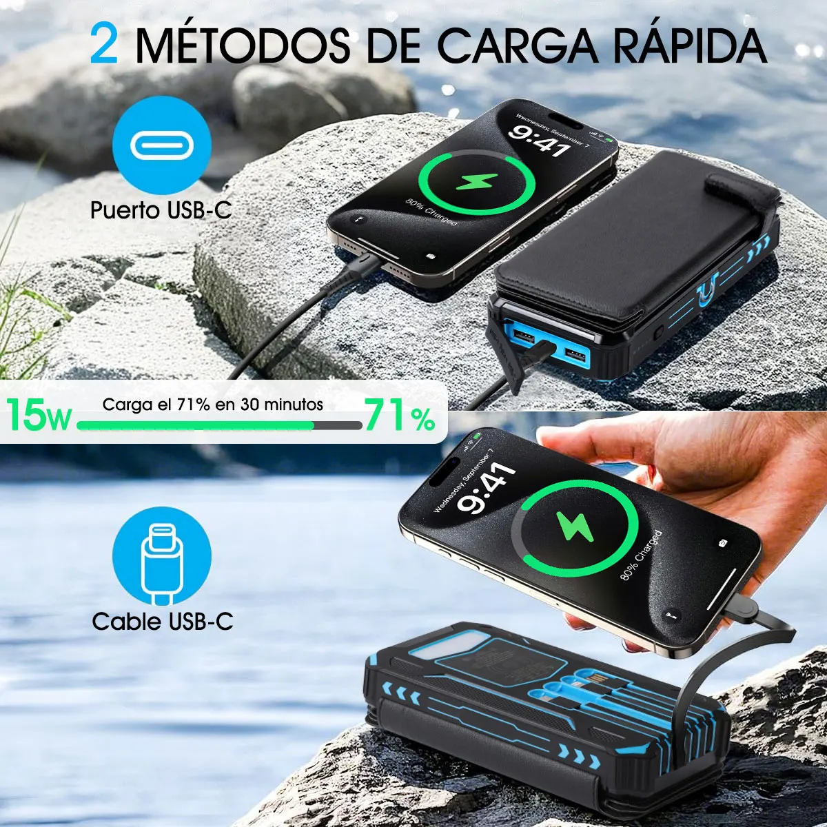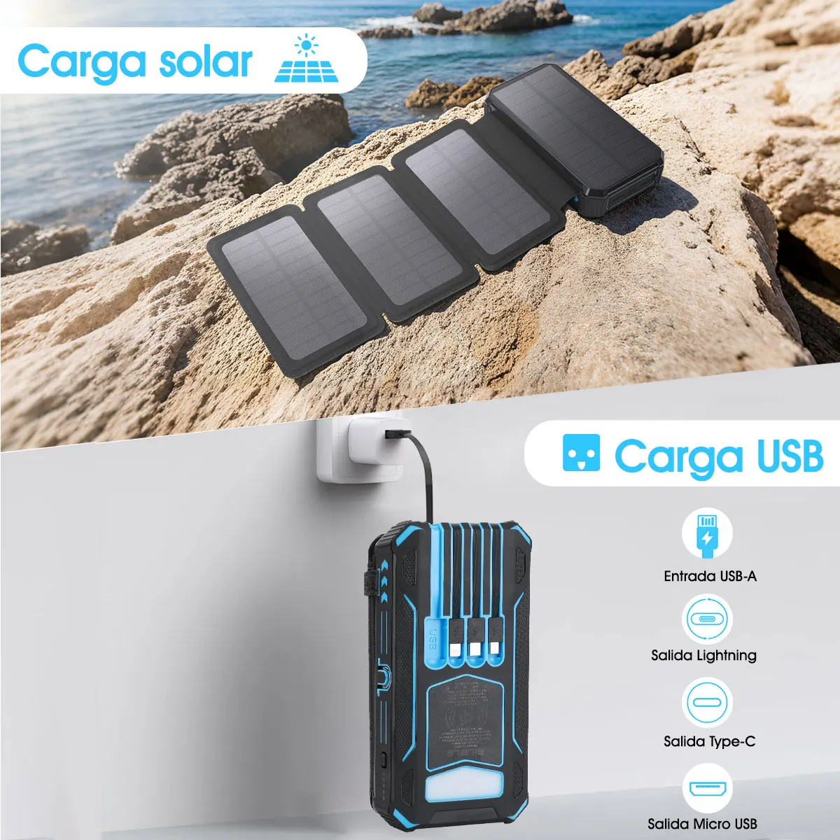 This power bank is a must-have for anyone who relies heavily on mobile devices, especially during travel, outdoor adventures, or in emergency situations. Its large capacity and fast charging capabilities mean you spend less time tethered to a wall socket and more time connected with the people and information that matter. The wireless charging option adds convenience by reducing cable clutter, while solar charging provides an eco-friendly backup power source. Simply charge the power bank in advance or use solar energy to maintain power reserves.