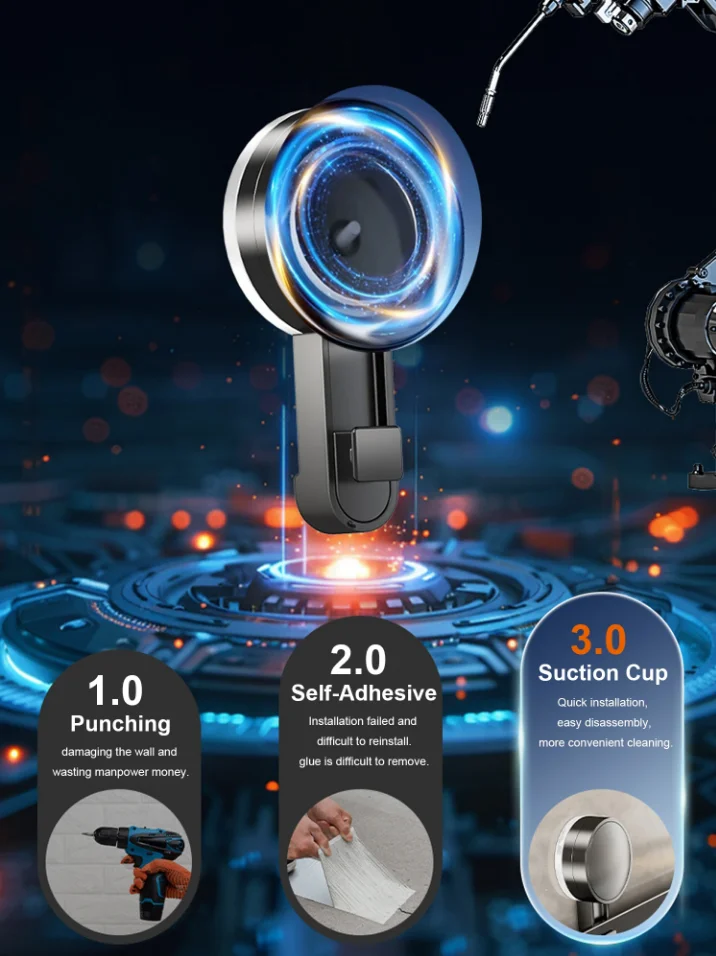 – Advanced suction cup system ensures a secure, no-drill installation on smooth surfaces.