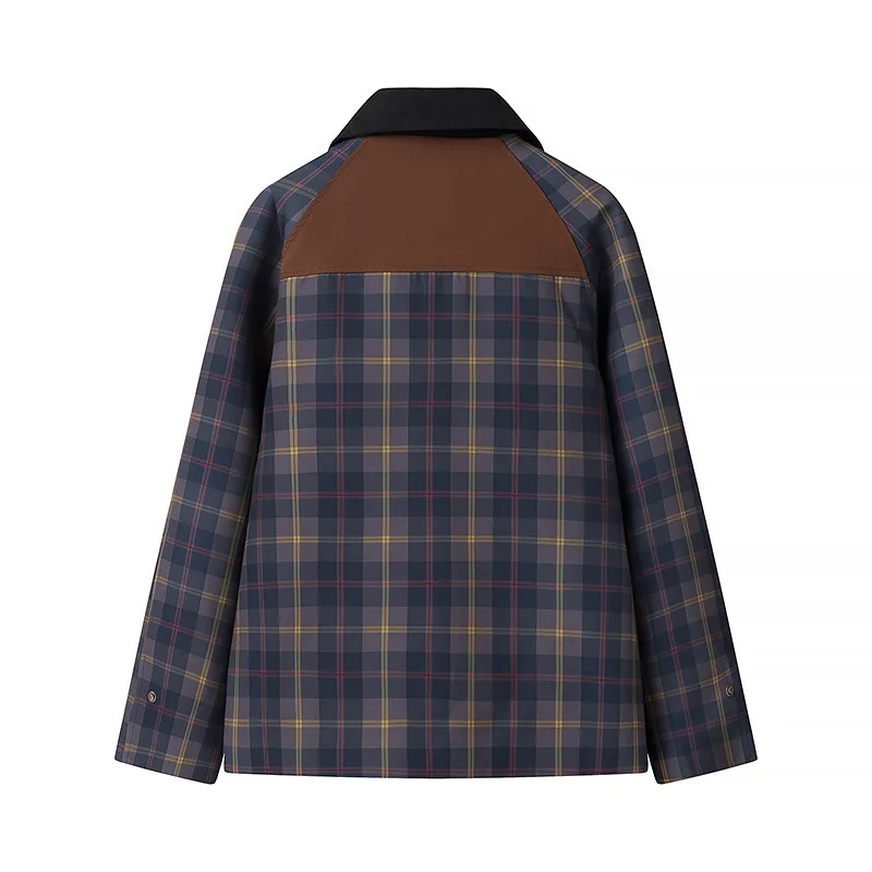 Spring 2025 Women’s Casual Plaid Stand Collar Jacket Fashion Street Style Comfortable Polyester Fabric Long Sleeve Zipper Clo…