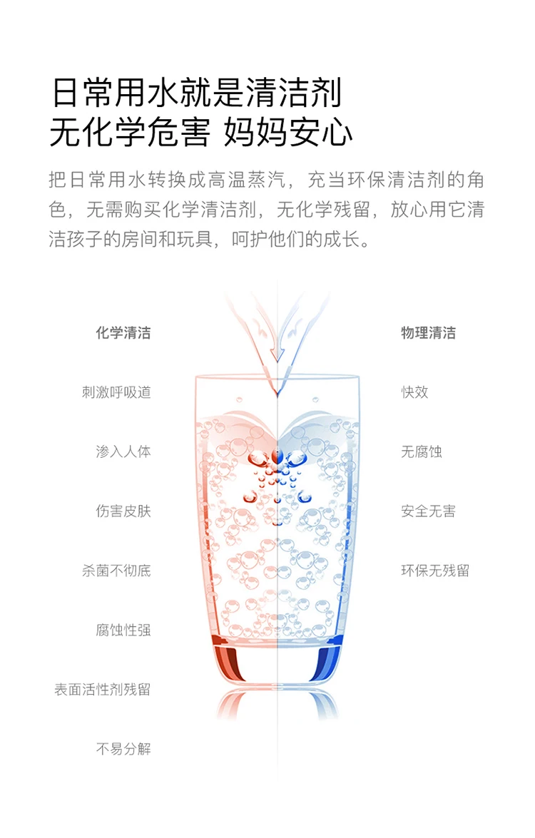 - Chemical-Free Cleaning: Utilizes pure water vapor for an eco-friendly and safe cleaning experience, perfect for homes with children and pets.