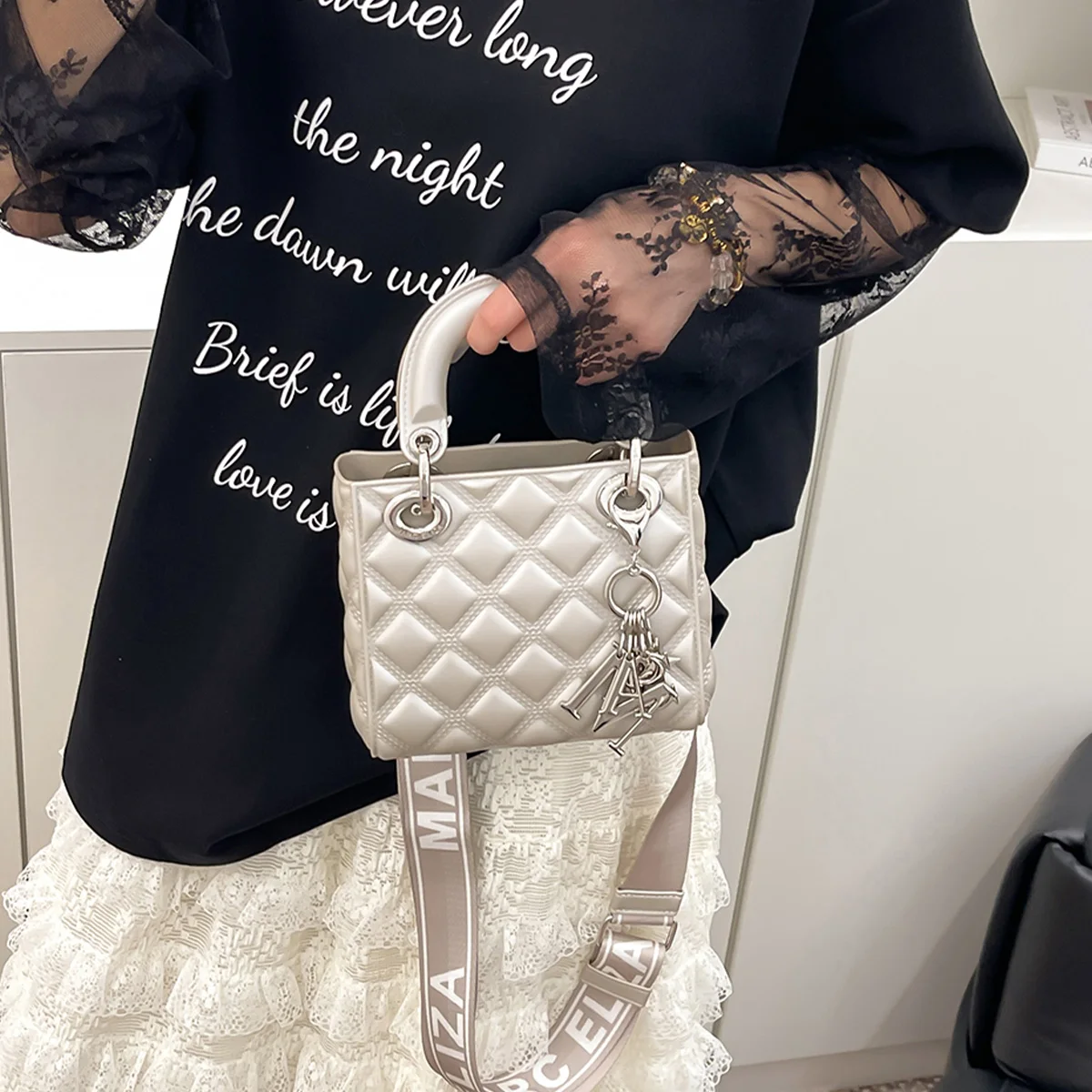 This tote bag seamlessly blends style with function, ensuring you look polished whether heading to work, running errands, or meeting friends. The adjustable strap allows for hands-free convenience, while the roomy interior keeps your belongings organized and accessible. Its durable PU material resists wear and tear, making it a reliable companion for everyday life. The elegant diamond-quilted pattern and metal decor elevate your outfit, granting you confidence and sophistication on any occasion.