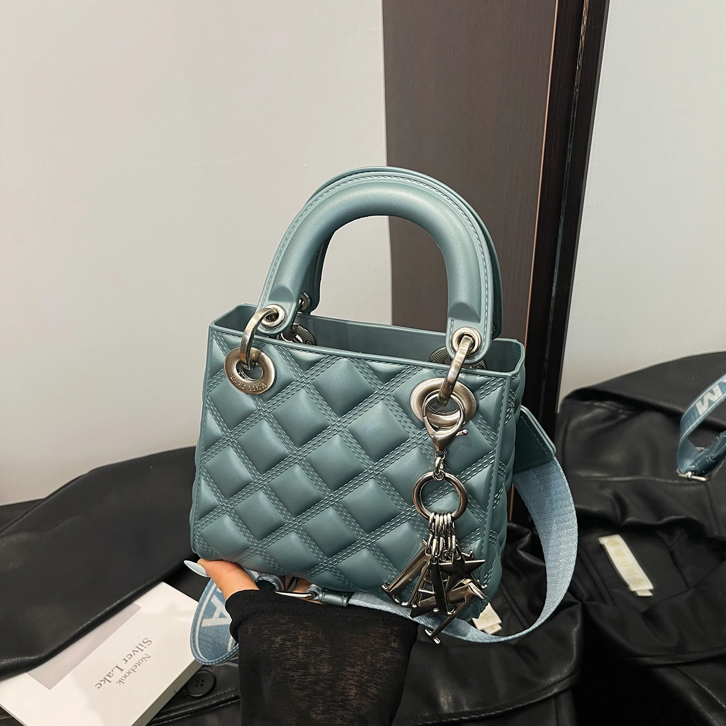 – Diamond-quilted design with a sleek crystal jelly PU finish, adding a touch of luxury and durability.