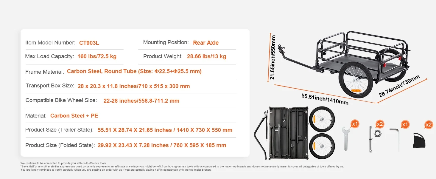 The Succe Buy 160 lbs Bike Cargo Trailer is the perfect solution for cyclists seeking a versatile and sturdy wagon cart to transport goods with ease. Designed to fit bike wheels ranging from 22″ to 28″, this foldable trailer offers exceptional cargo capacity and reliable performance for daily errands, recreational outings, or delivery purposes.