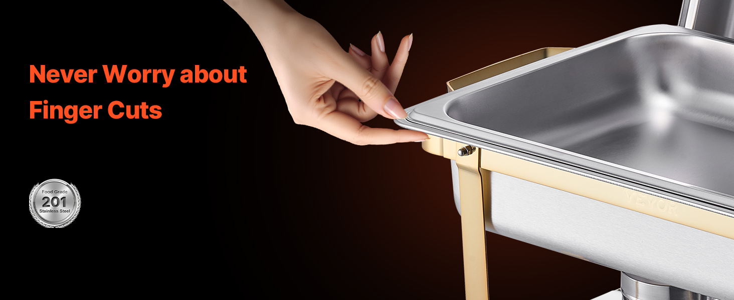 Crafted from food-grade stainless steel, these chafers are designed for safe and reliable food service. To maintain their shine, hand washing is recommended, although the pans are dishwasher safe. The fuel holders are designed to accommodate standard chafing fuel cans (fuel not included). Store in a dry place when not in use. Elevate your next catering event with the Succe Buy 8 Qt Chafing Dish Buffet Set and experience the perfect blend of style and functionality.