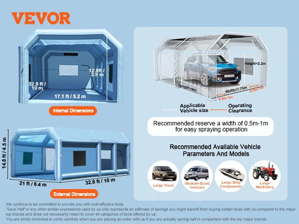 The Succe Buy Inflatable Paint Booth offers an effective way to achieve professional-grade paint jobs by providing a controlled environment that reduces dust, debris, and environmental contaminants. Its portability allows painters to set up quickly wherever needed, eliminating the need for permanent, costly paint booths. The powerful blower system enhances airflow, promoting even drying and preventing paint defects. This booth is perfect for automotive refinishing, industrial coating, and other spray applications requiring precision and cleanliness. By using this inflatable spray booth, customers save time, improve paint quality, and enhance workplace safety.