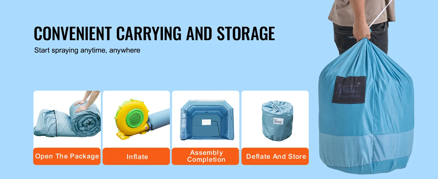 The Succe Buy Inflatable Paint Booth is a cutting-edge solution designed for professional and hobbyist painters seeking a controlled, clean environment for car painting and other spray applications. Combining portability with powerful performance, this inflatable spray booth ensures high-quality finishes while maintaining safety and convenience. Ideal for automotive shops, restoration projects, and on-site tasks, this booth offers flexibility without compromising on functionality.