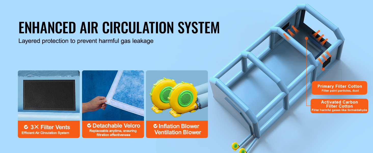 Crafted from high-quality, tear-resistant fabric, the booth is easy to clean and maintain. The inflatable design requires minimal effort to assemble and disassemble, making it a practical choice for frequent use. To preserve the booth’s longevity, avoid sharp objects and store it in a dry place when not in use. This paint booth combines innovation and practicality, making it an indispensable tool for anyone seeking a portable and effective spray painting environment.