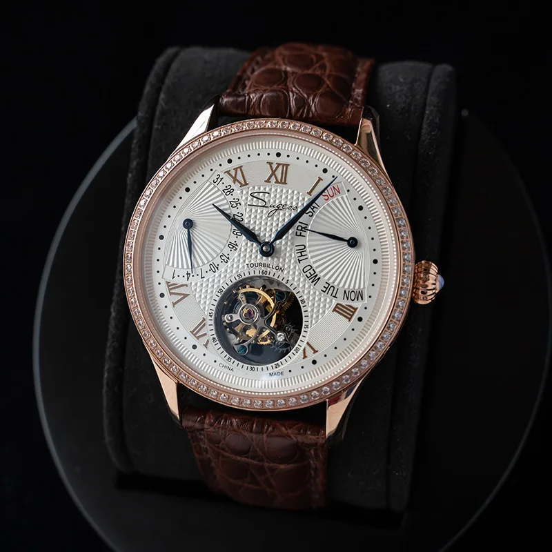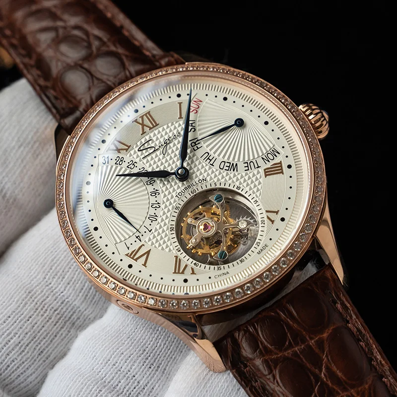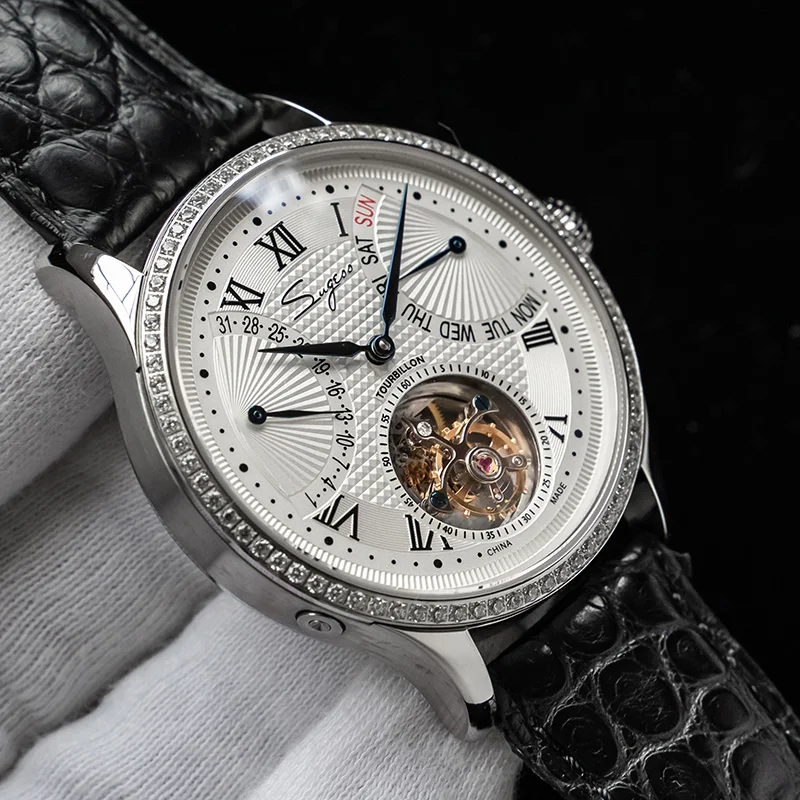 Crafted with meticulous attention to detail, the Sugess Tourbillon 8004 utilizes high-quality materials to ensure longevity and aesthetic appeal. The case is expertly finished, offering a substantial yet comfortable feel on the wrist. The crocodile leather strap is not only visually striking but also designed for long-term wear and comfort. To maintain the pristine condition of your watch, we recommend avoiding exposure to extreme temperatures, strong magnetic fields, and harsh chemicals. Gentle cleaning with a soft, dry cloth is advised. This watch is more than an accessory; it is an heirloom in the making, a piece of mechanical art that will be cherished for generations.