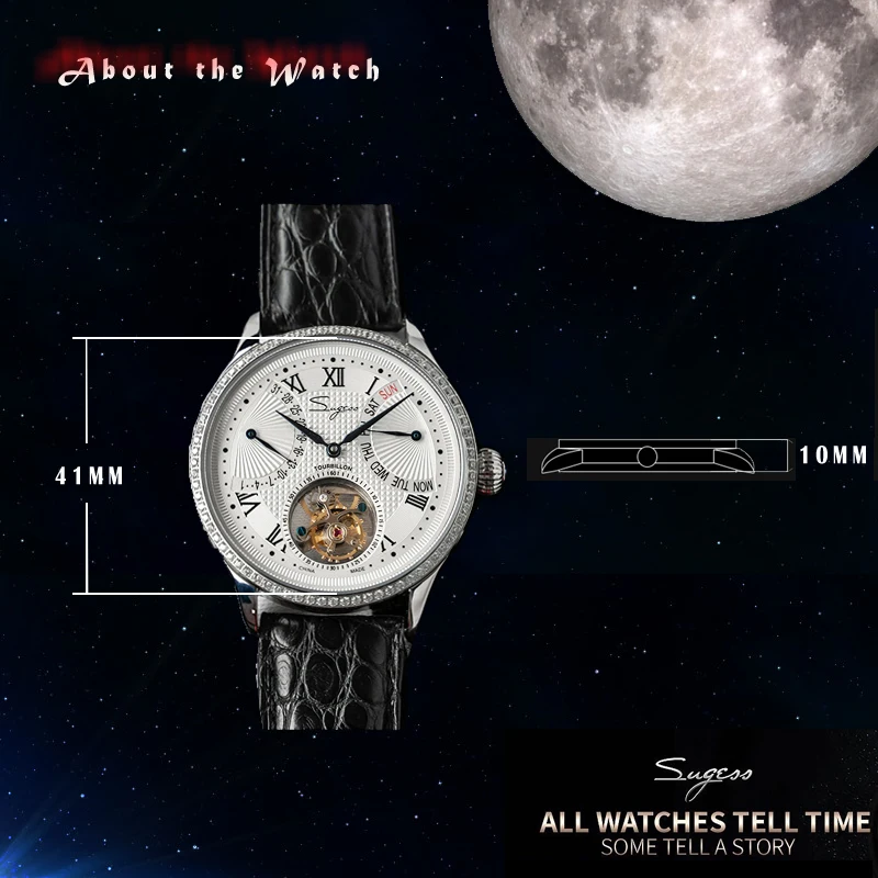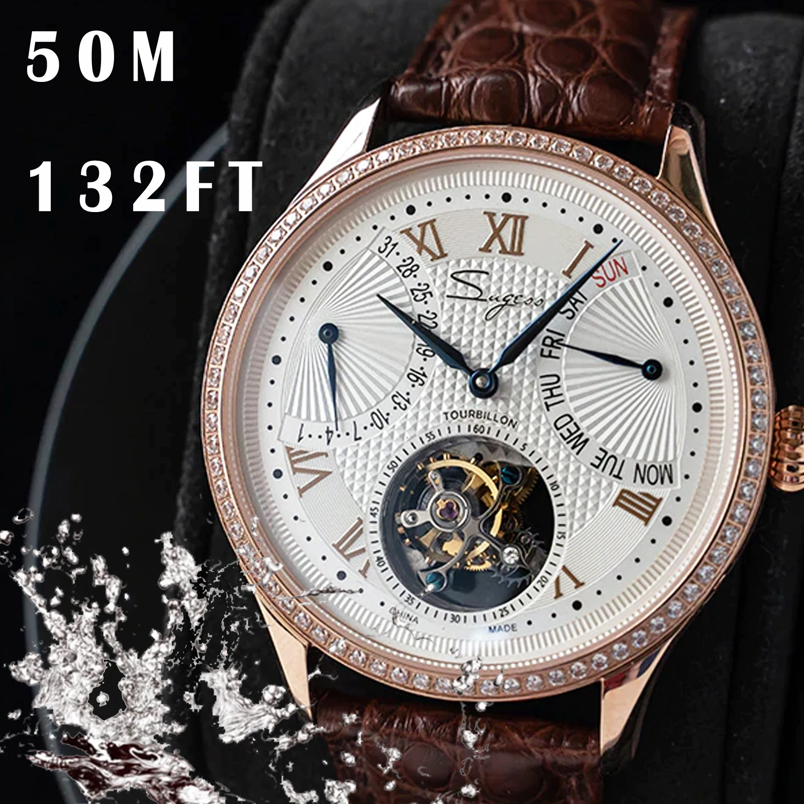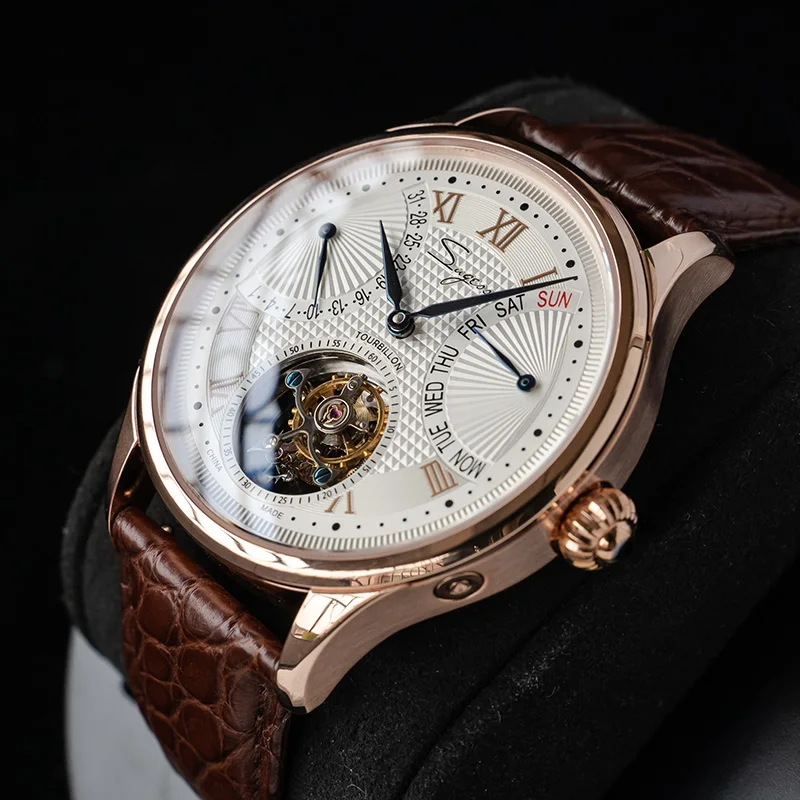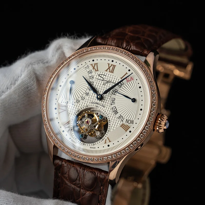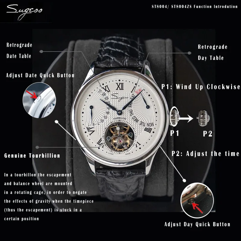 The Sugess Tourbillon 8004 is designed to be an enduring companion for life's most significant moments. Its automatic movement means you'll never need to worry about battery replacements, and the hand-wind capability offers an additional layer of control and engagement with the mechanical marvel on your wrist. The date function ensures you're always on schedule, while the tourbillon complication serves as a constant reminder of the dedication to precision and excellence.