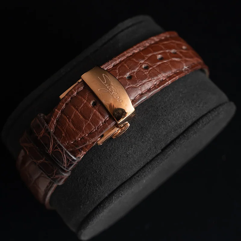 - Premium Crocodile Leather Strap: Indulge in the supple comfort and sophisticated look of the genuine crocodile leather strap, expertly crafted for durability and a luxurious feel.