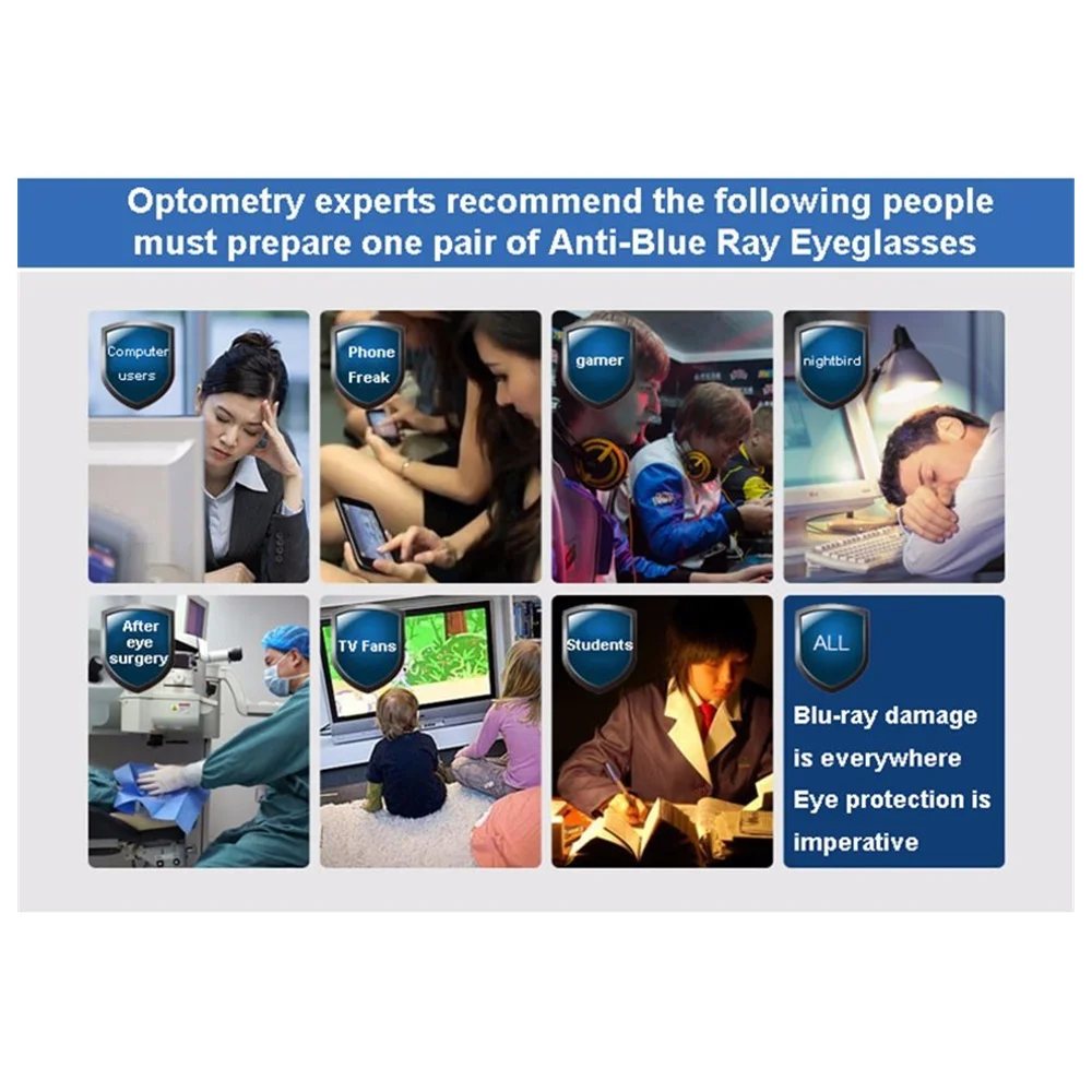 – Lens color options include normal and with anti-blue light coating to reduce digital eye strain and protect against harmful blue light emissions