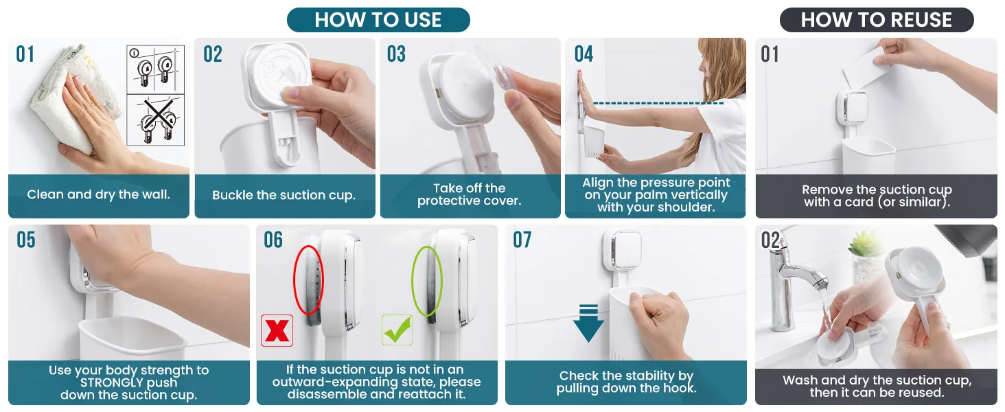 - Revolutionary Suction Cup Technology: Provides an incredibly strong, long-lasting hold on smooth, non-porous surfaces such as tiles, mirrors, and glass, all without the need for drills, screws, or messy adhesives.