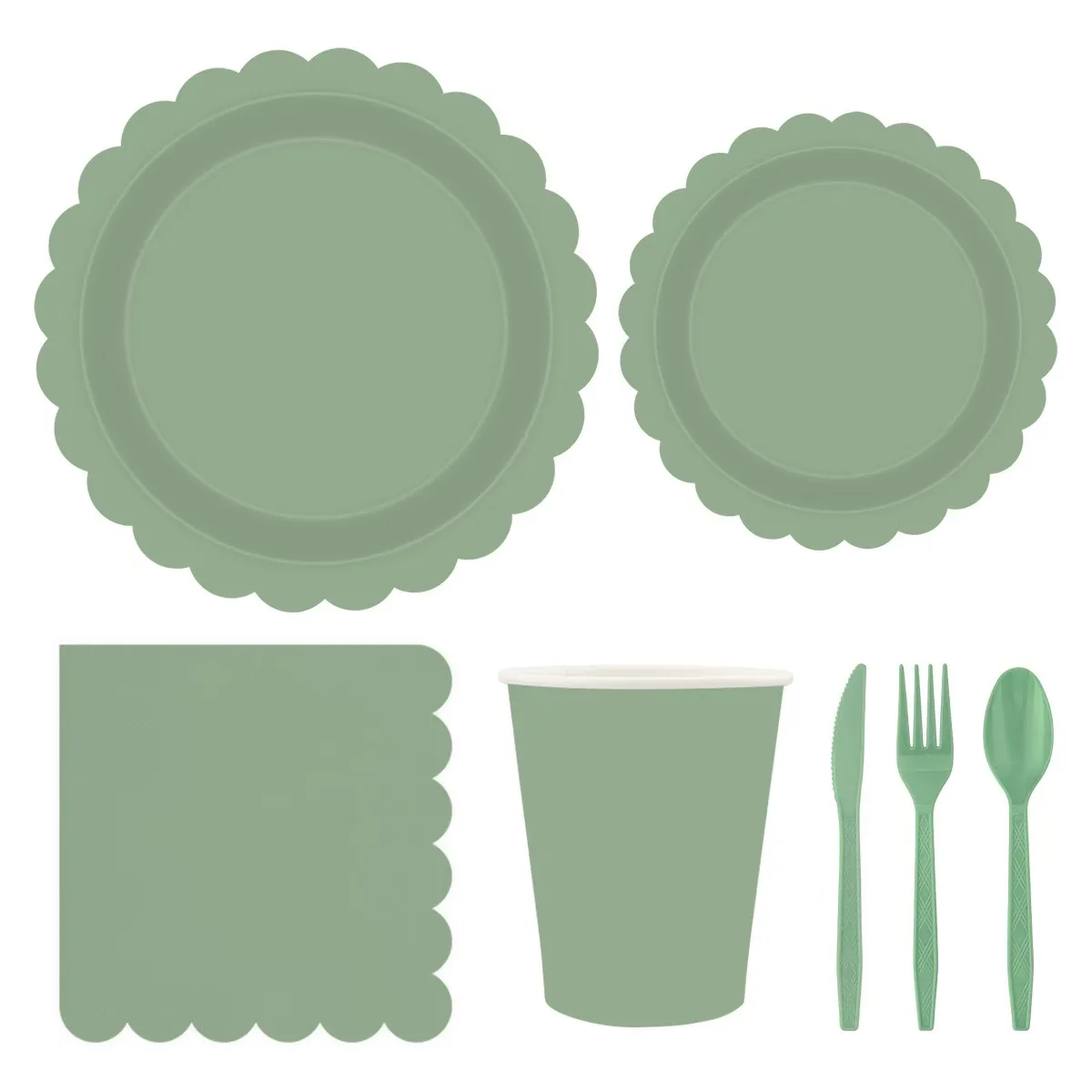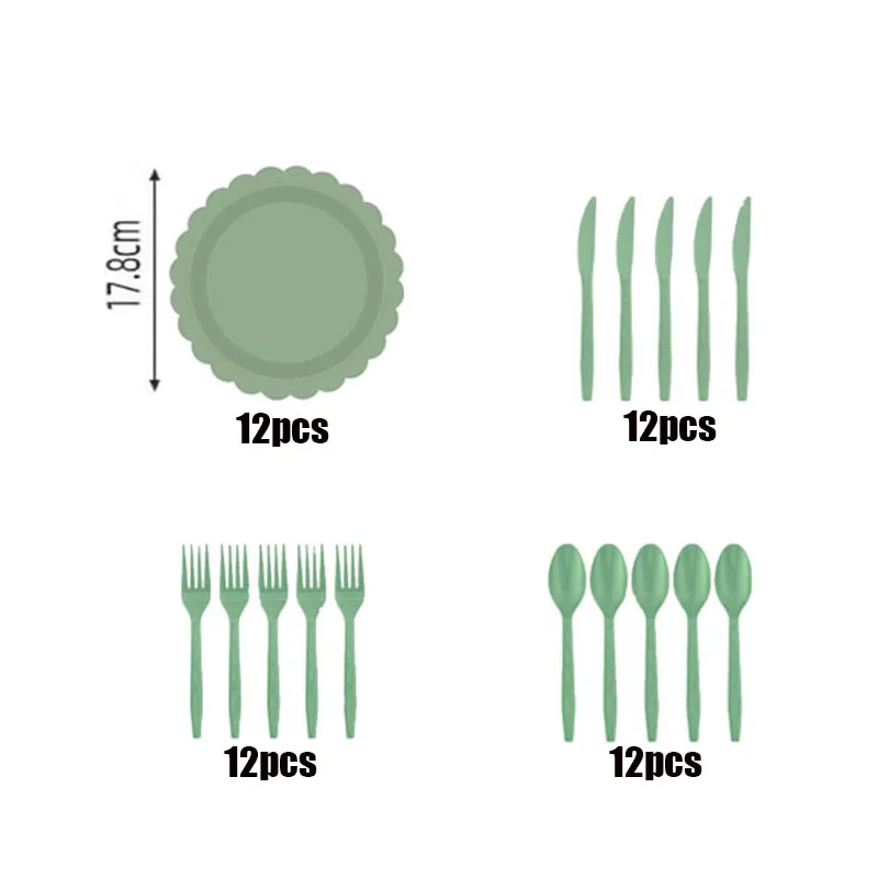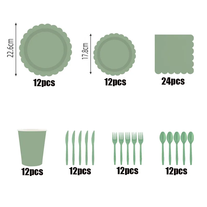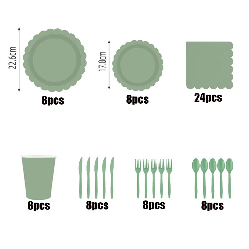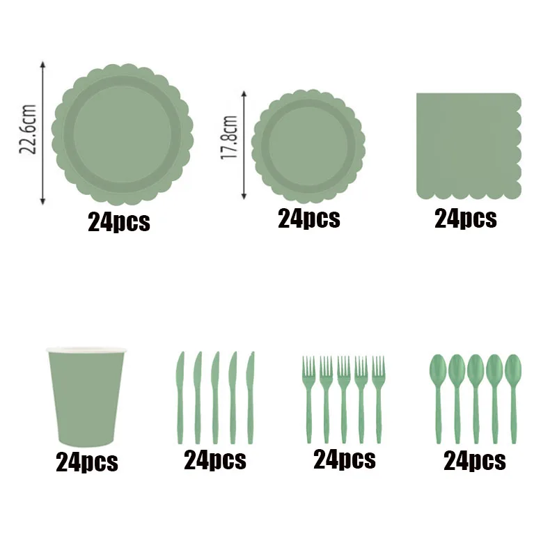 The Lace Light Green Party Set is designed for the discerning host who values both aesthetics and functionality. Forget the hassle of washing dishes; our durable disposable items are crafted to handle all your party needs, from appetizers to main courses and celebratory drinks. The delicate lace pattern adds a unique and sophisticated touch that will impress your guests and elevate the overall ambiance of your event.