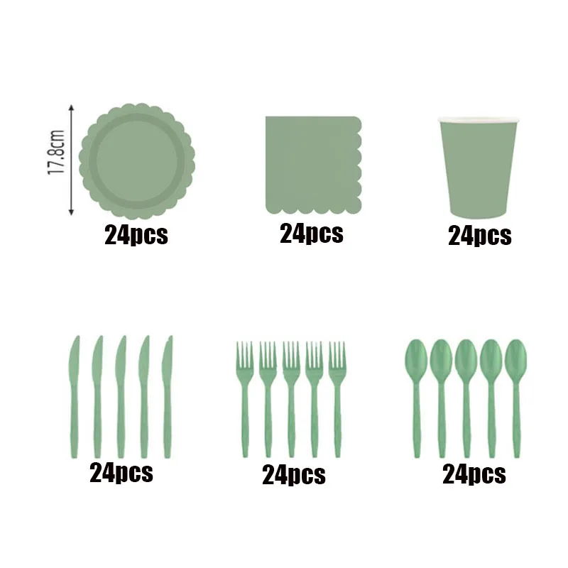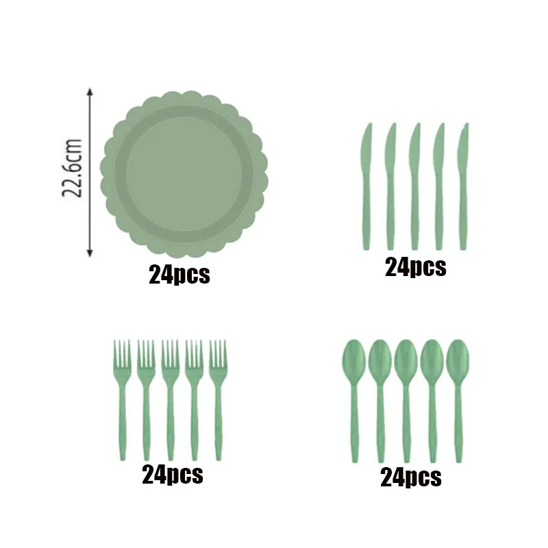 This versatile set is perfect for adding a touch of seasonal cheer to your Easter decorations or creating a whimsical atmosphere for a baby's first birthday. The charming light green hue complements various themes and color schemes, making it a flexible choice for any celebration. Enjoy the convenience of disposable partyware without compromising on style.