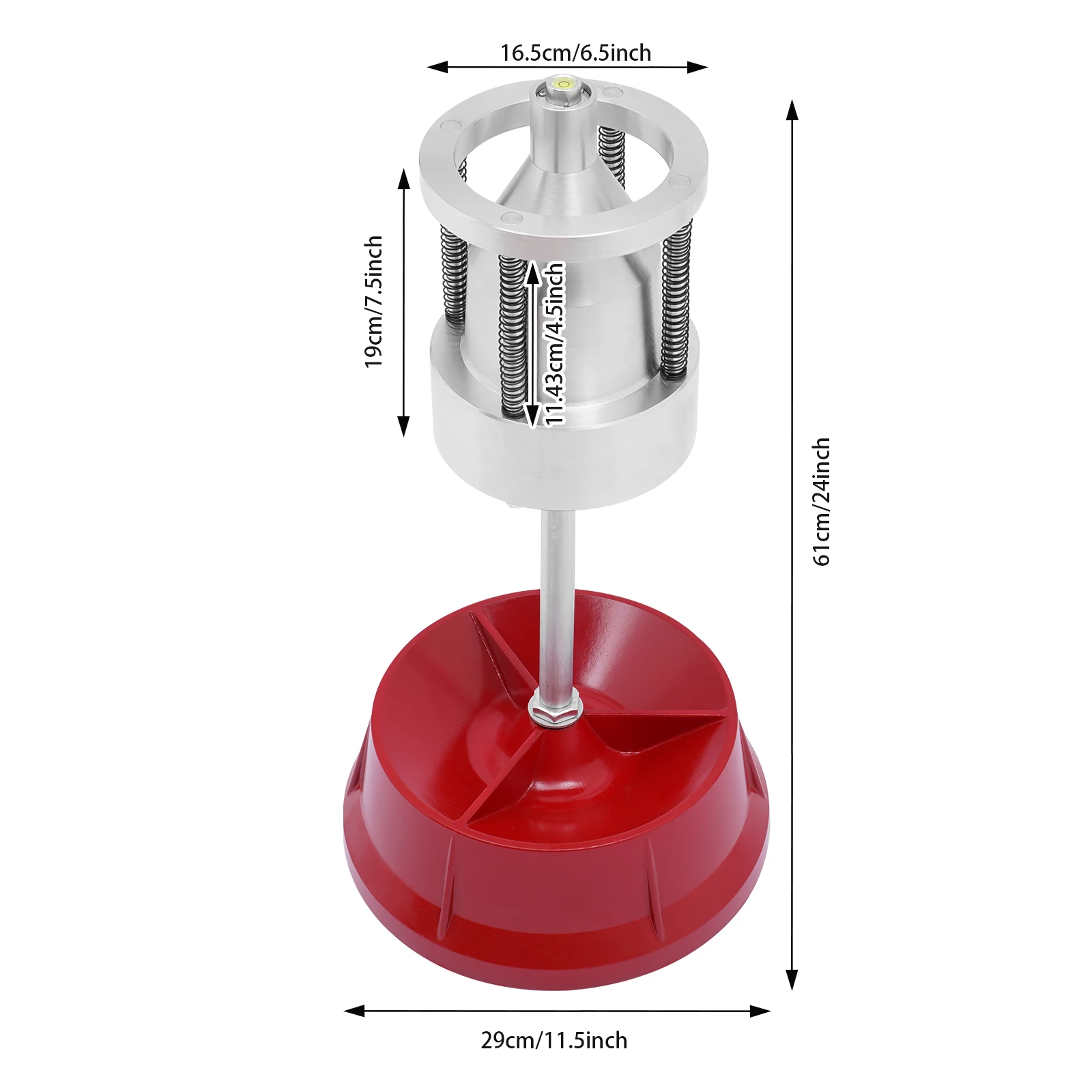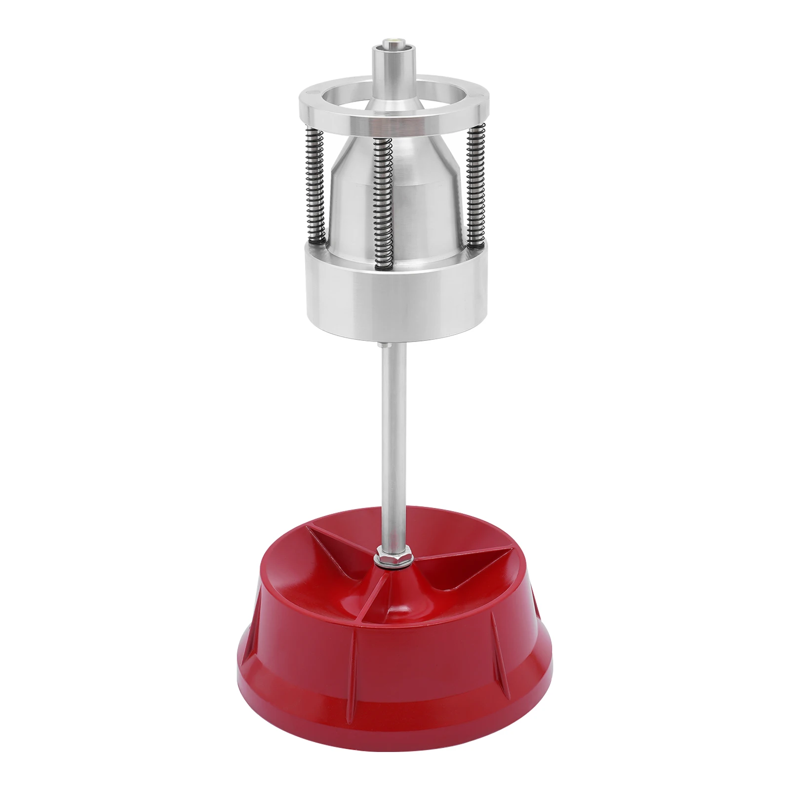 Precision manual tire balancer made from durable aluminum alloy, fitting hubs 1-4 in (2.5-10 cm) diameter. Ideal for most cars and light trucks, this red tool ensures smooth rides and improved tire longevity. Reliable quality shipped from Germany for professional balancing.
