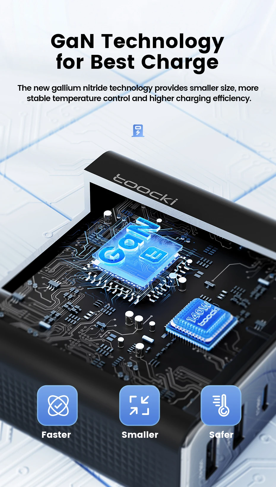 Constructed with premium materials, the Toocki charger is designed for durability and long-term use. The GaN technology not only provides superior energy efficiency but also contributes to a smaller, lighter charger footprint. For optimal performance, avoid exposure to extreme temperatures and moisture. Compatible plug types and color variants ensure you find the perfect match for your environment and preferences. Upgrade your charging experience with the Toocki 140W GaN USB Charger and enjoy fast, safe, and reliable power delivery every day.