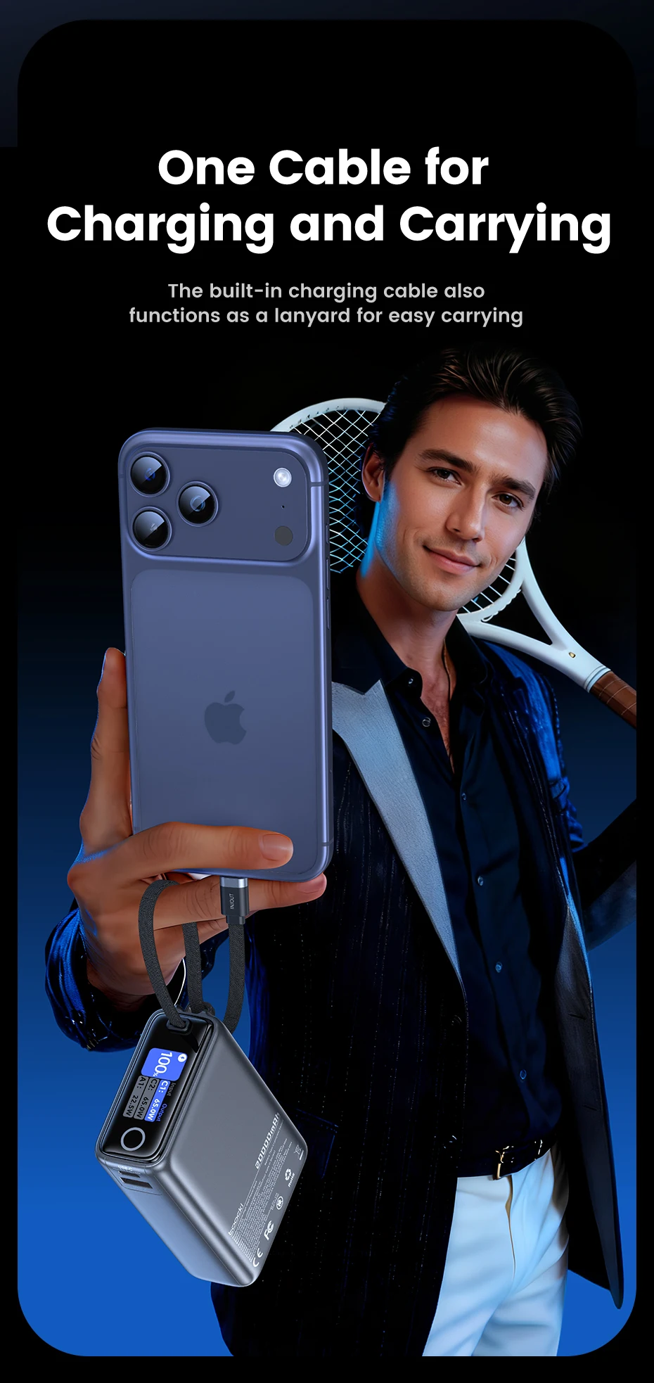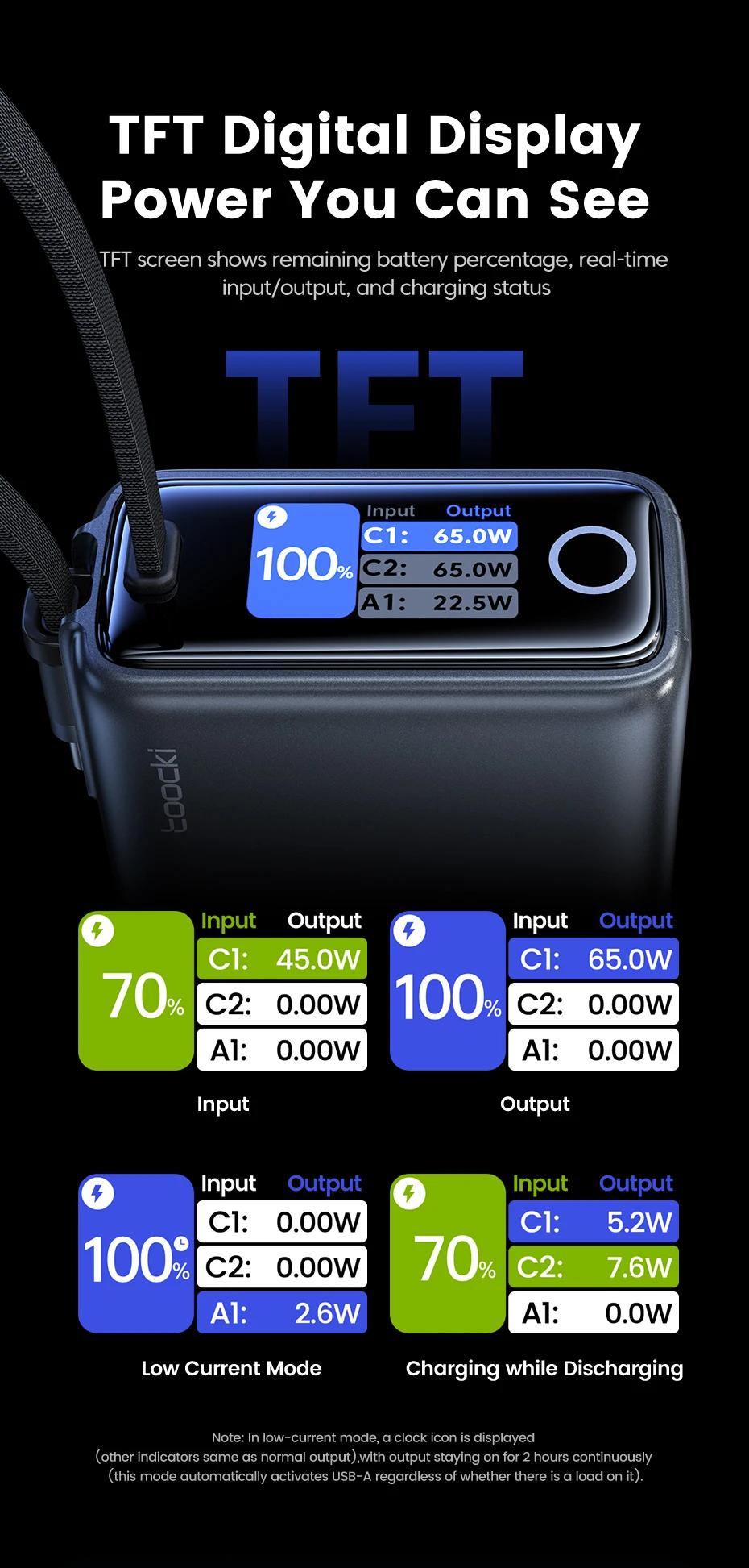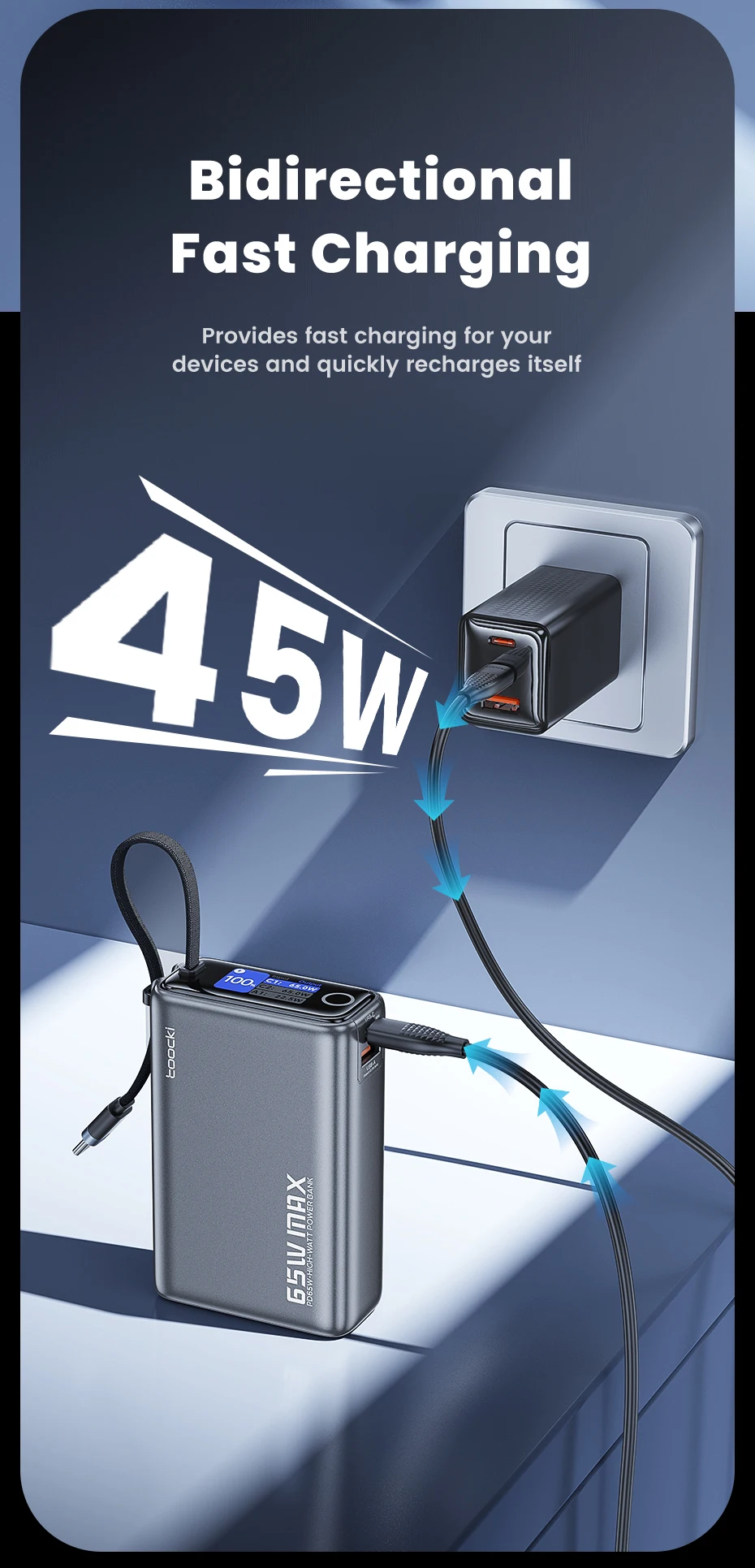 Experience uninterrupted productivity and connectivity with the Toocki Portable Powerbank, a high-capacity 65W 20000mAh external battery designed to fast-charge your laptop, iPhone 17, iPhone 16, and other compatible devices. Engineered with the latest PD3.0 technology and a digital visualized display, this powerbank ensures you always know your remaining power and can recharge quickly and efficiently wherever you are.