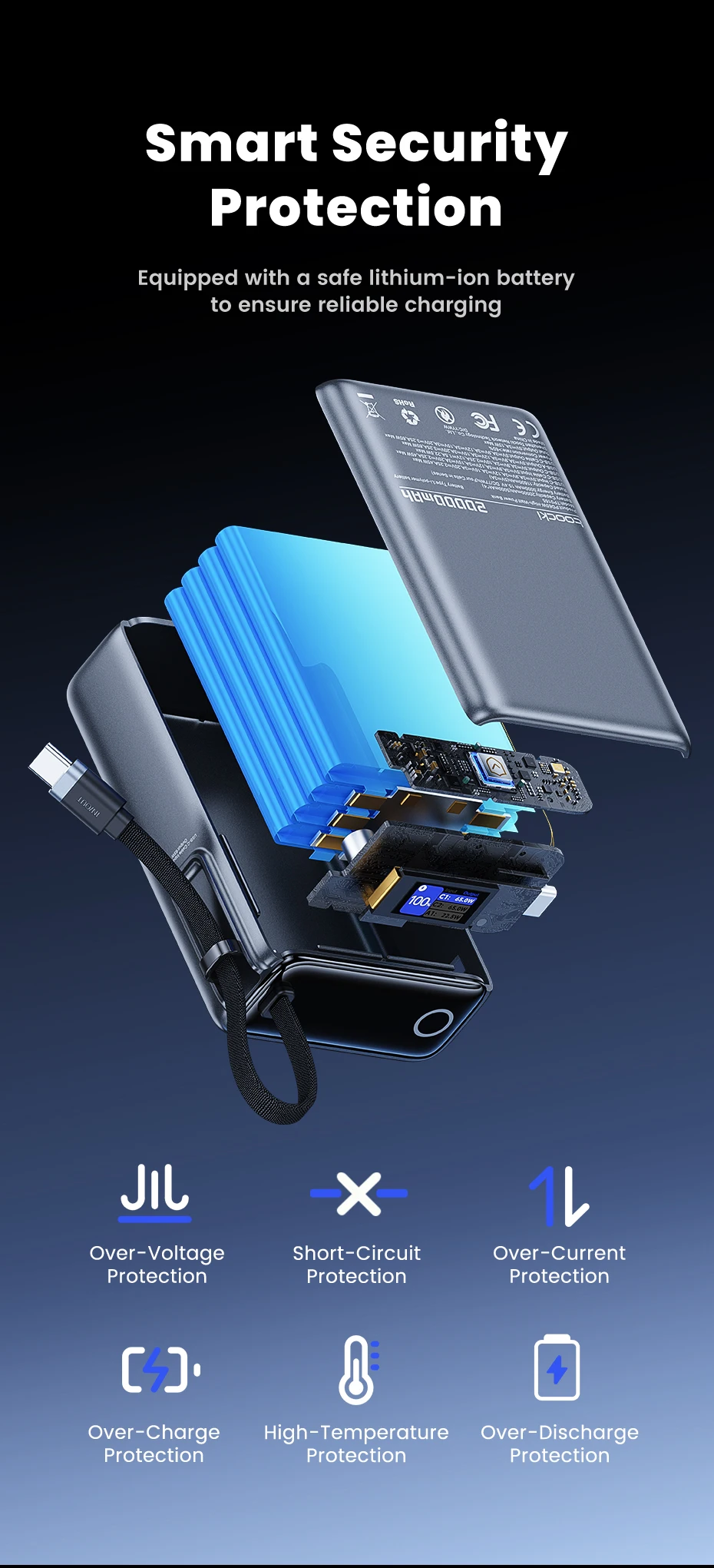 Constructed with premium materials for durability and safety, the Toocki Powerbank features advanced circuit protection against overcharging, overheating, and short circuits. To maintain optimal performance, store the powerbank in a cool, dry place and avoid exposure to extreme temperatures. Compatible with a wide range of USB-C and USB-A cables, it is a versatile and indispensable tool for modern electronic needs. Elevate your mobile power experience with Toocki’s cutting-edge technology and dependable design.