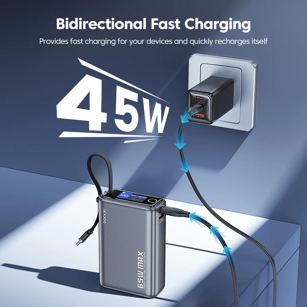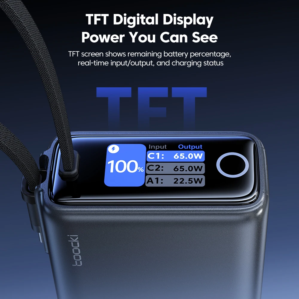 Toocki Portable Powerbank 65W 20000mAh PD3.0 Digital Visualized Fast Charge Power Bank