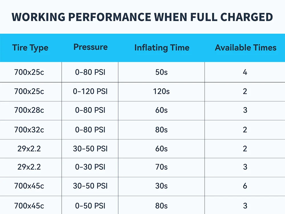 – Maximum pressure capacity of 120 PSI to handle various bike tire types