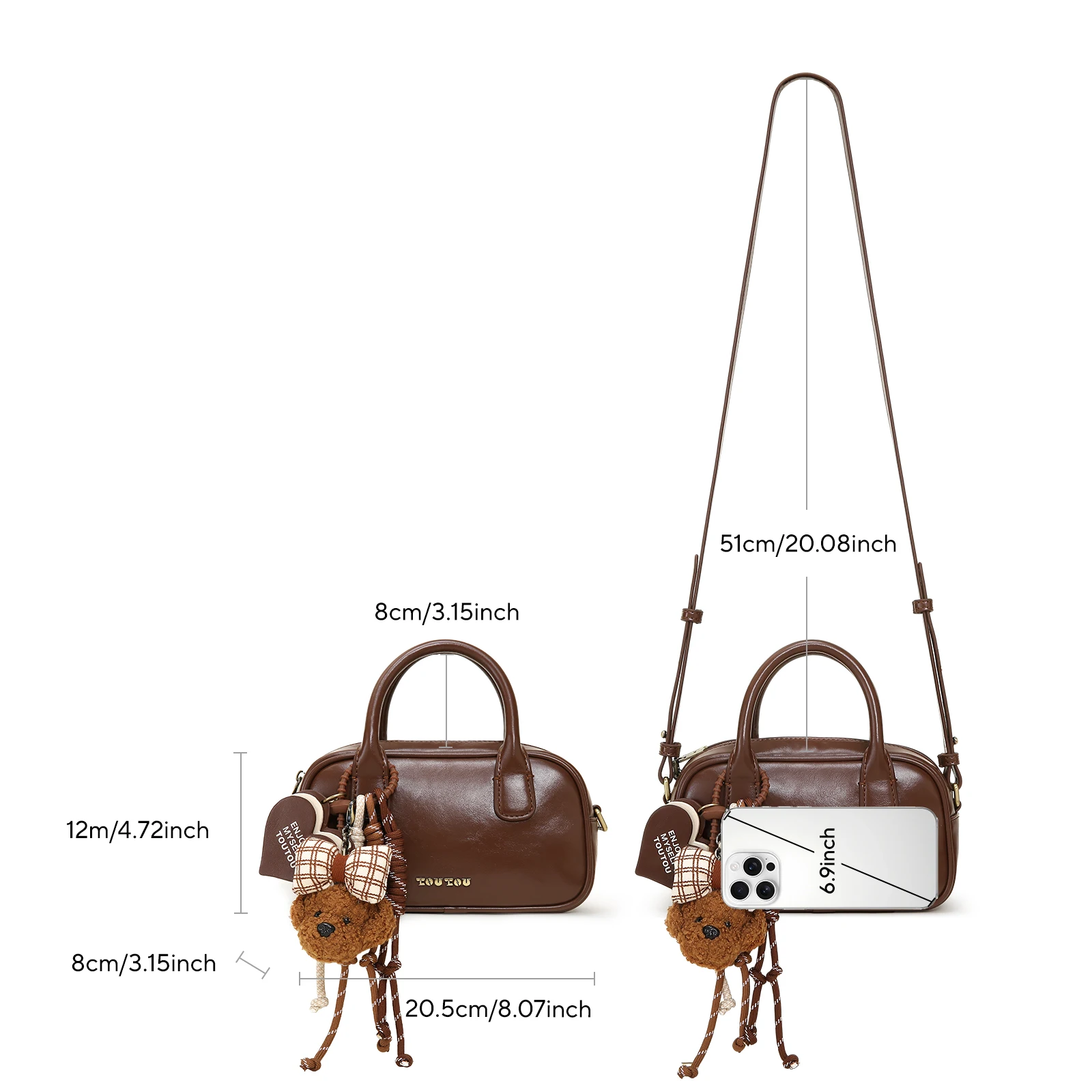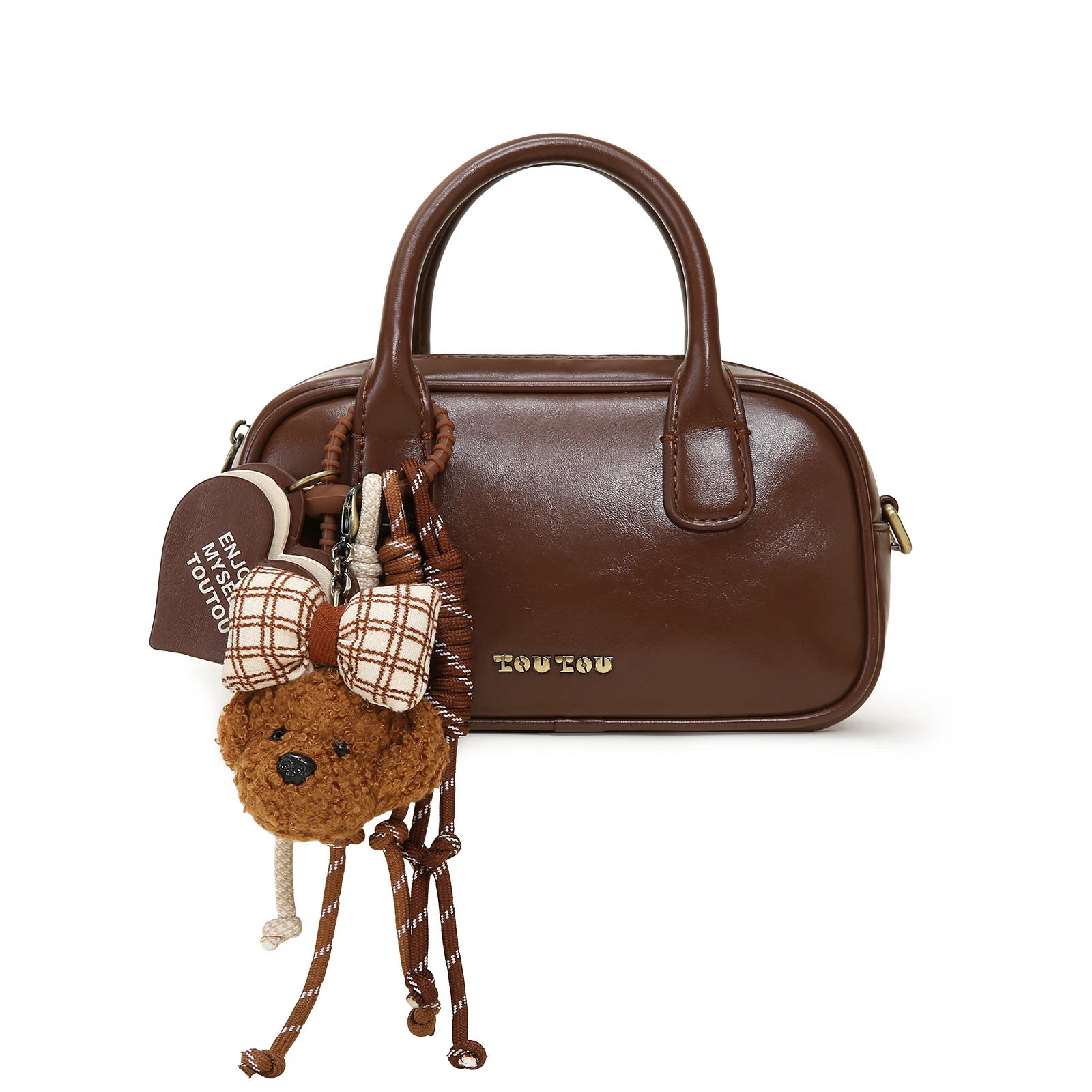 TOUTOU Puppy Boston Bowling Bag Women Brown Red Commuter Single Shoulder Crossbody Handbag with Strap Original Christmas Gift