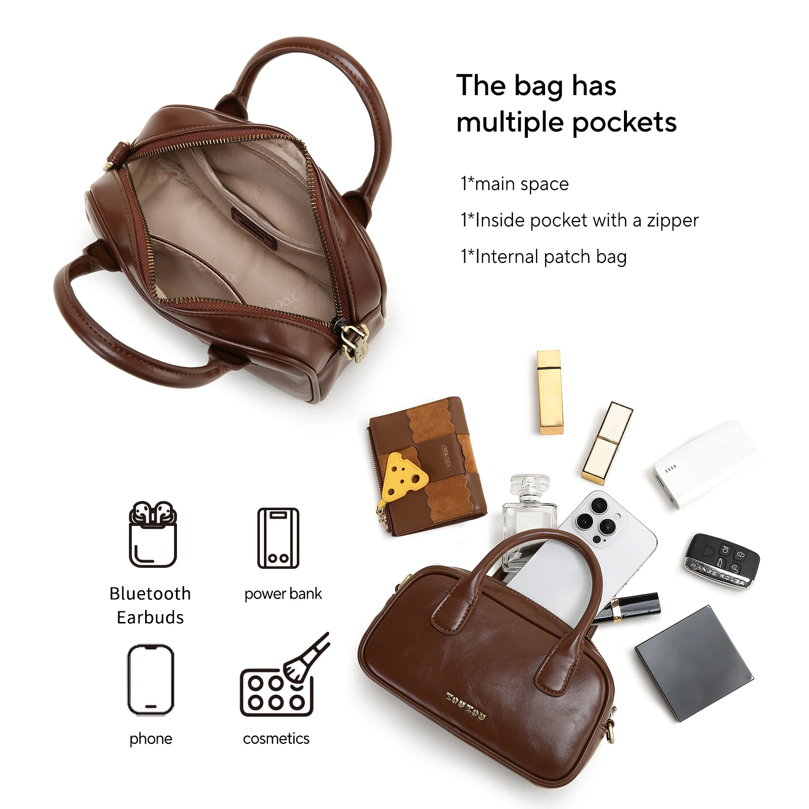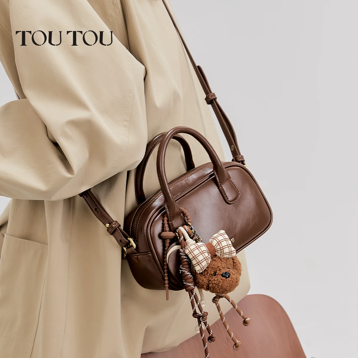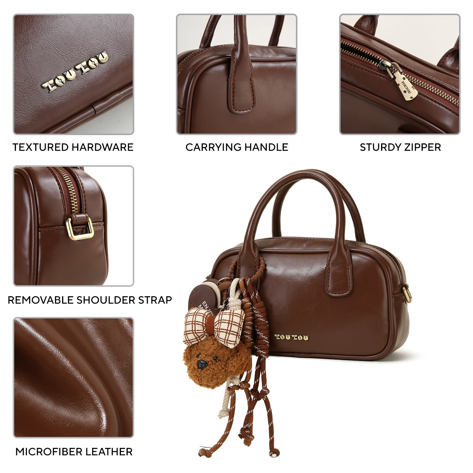 TOUTOU Puppy Boston Bowling Bag Women Brown Red Commuter Single Shoulder Crossbody Handbag with Strap Original Christmas Gift
