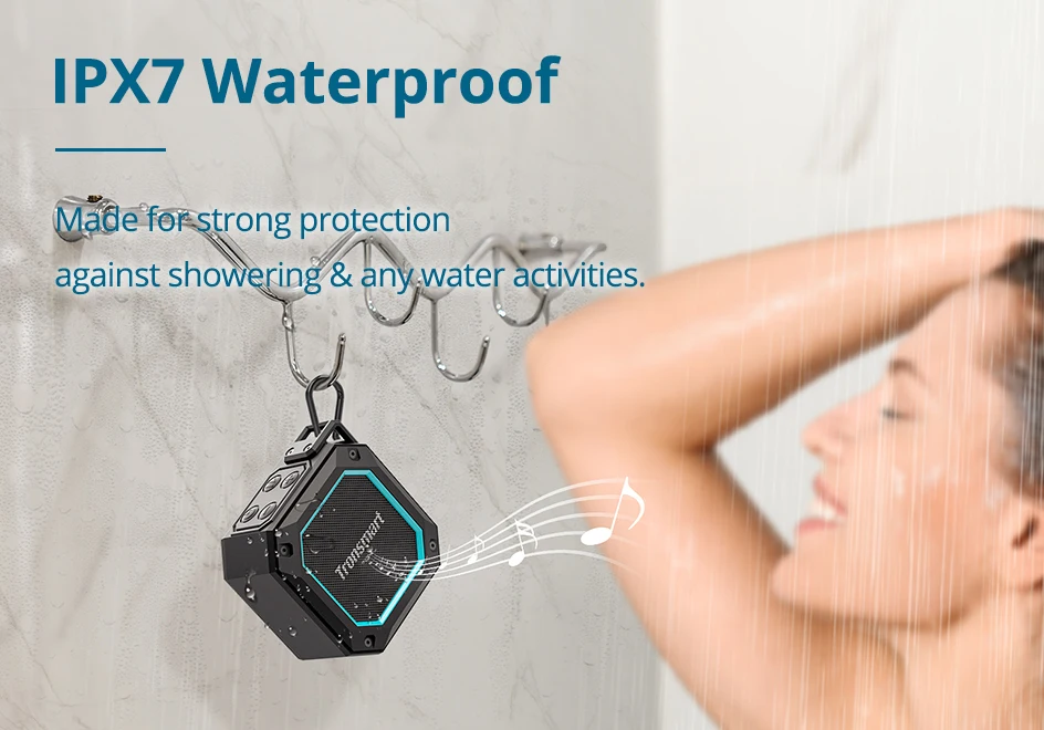 – IPX7 waterproof rating ensures the speaker is fully protected against water immersion, ideal for shower use or outdoor activities.