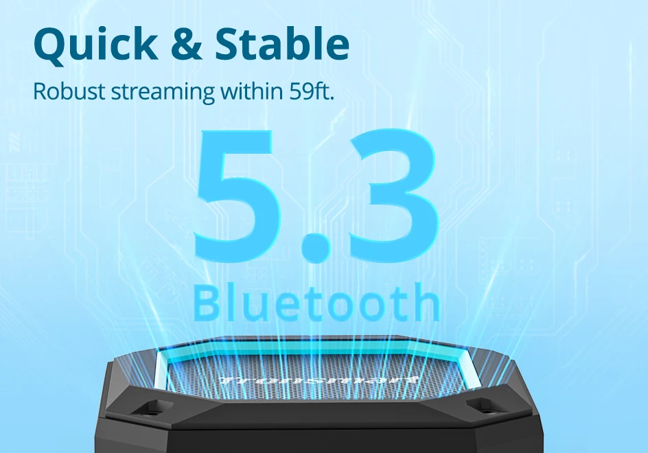– True Wireless Stereo (TWS) technology allows seamless pairing of two speakers for immersive, stereo sound.