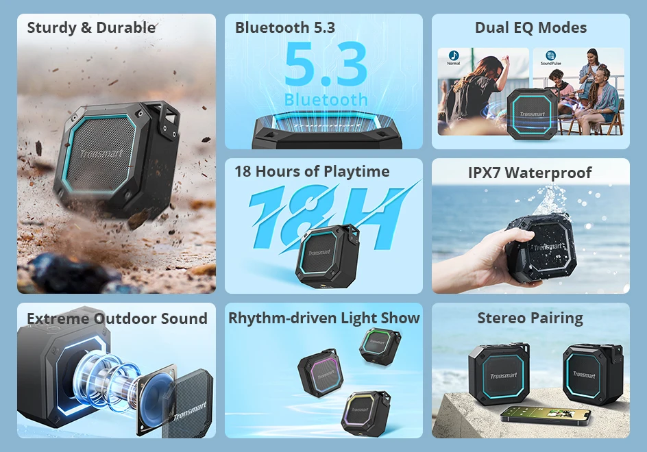 Discover the Tronsmart Groove 2 Bluetooth Portable Speaker, engineered to deliver exceptional audio quality with unmatched portability. Whether you’re enjoying a relaxing shower, embarking on an outdoor camping adventure, or simply unwinding at home, this speaker enhances every moment with rich sound and robust bass.