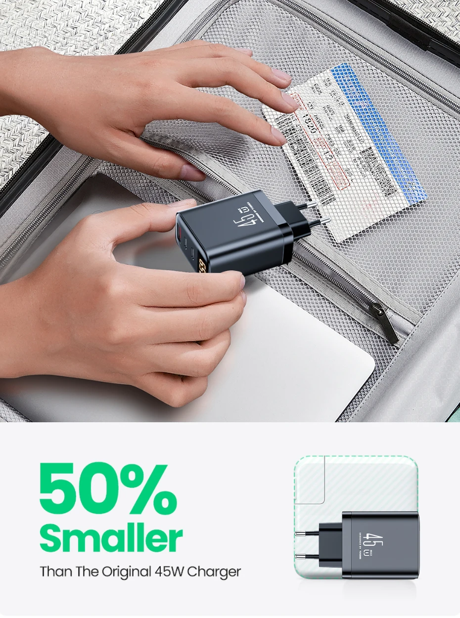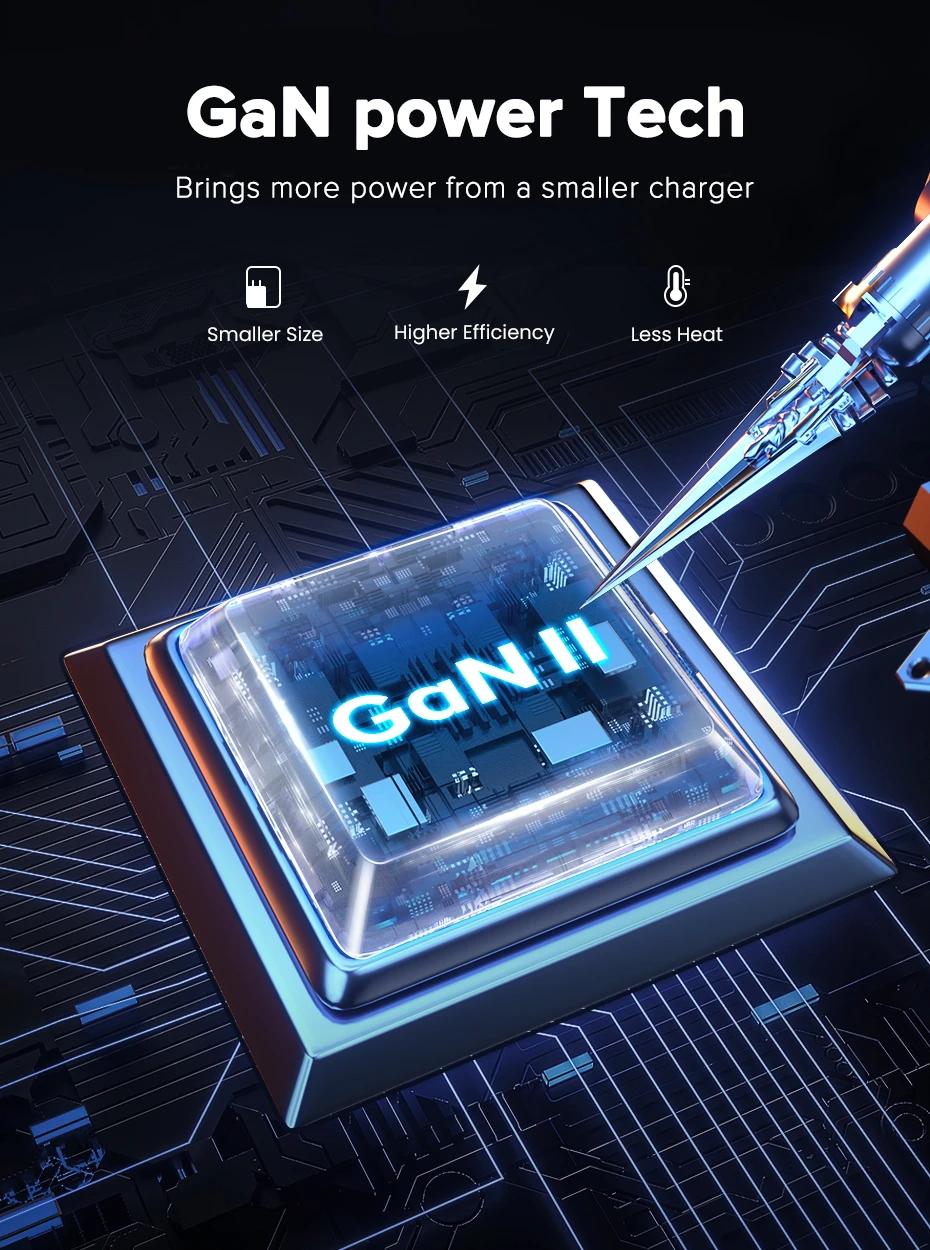 – Advanced GaN technology ensures efficient power delivery with minimal heat