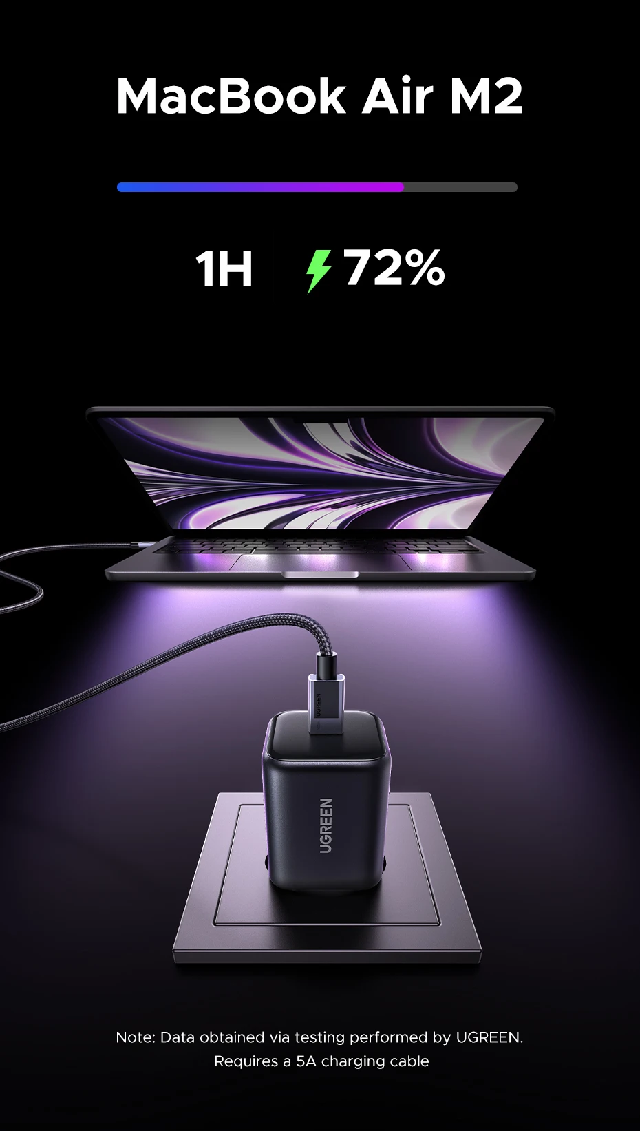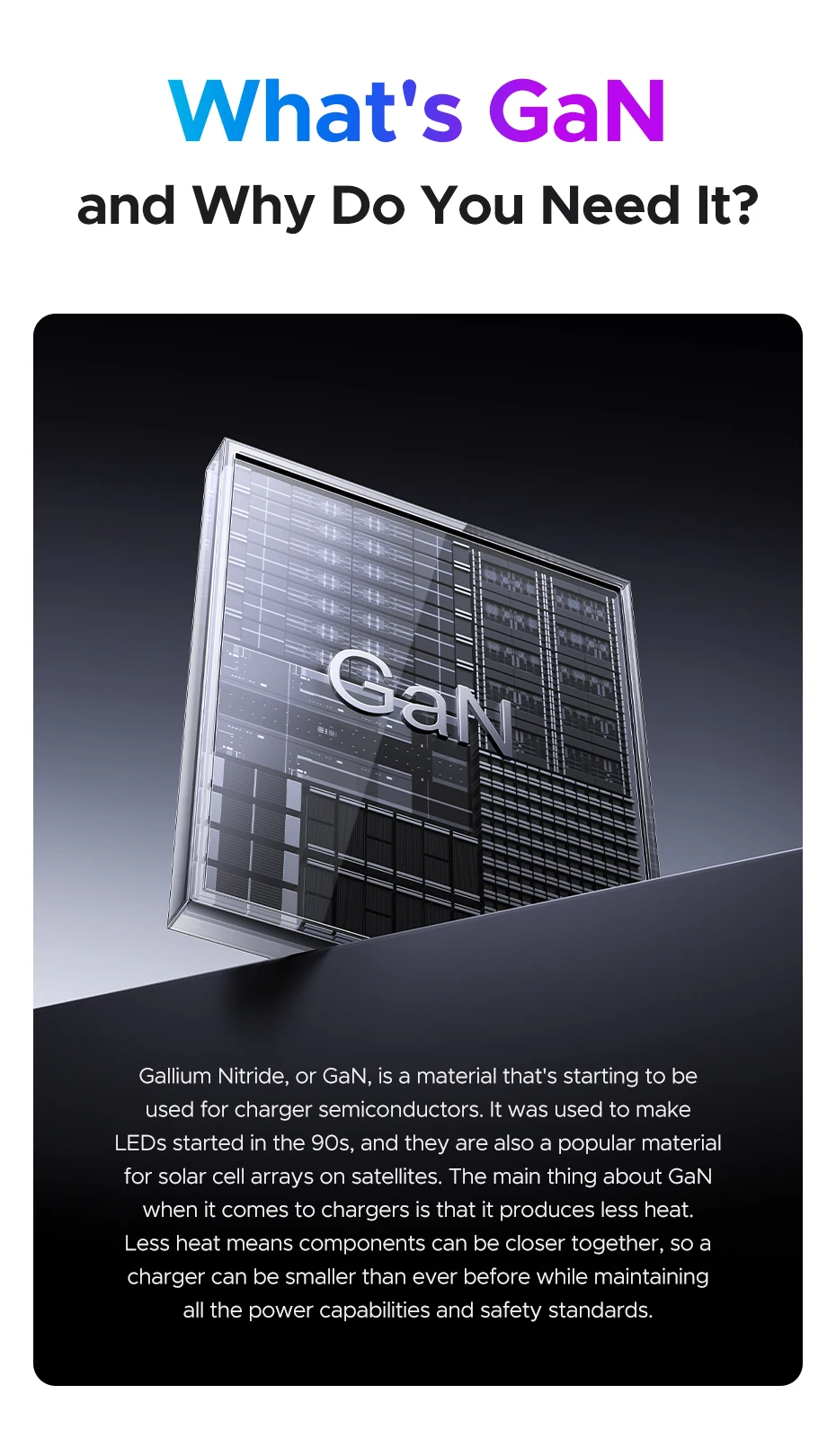 – Compact and lightweight GaN (Gallium Nitride) technology for higher efficiency and reduced heat generation
