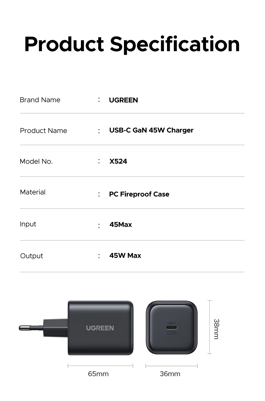 UGREEN 45W GaN Charger PD3.0 Fast Charger PPS QC3.0 Quick Charge