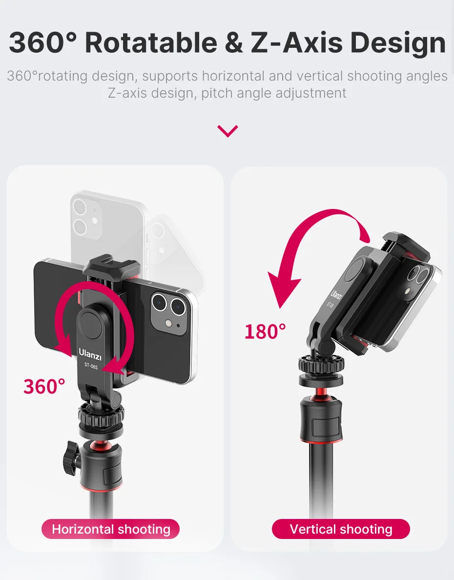 The Ulanzi ST-06 S is a premium 360° rotatable phone holder engineered to elevate your mobile photography and videography experience. Crafted for vloggers, influencers, and professionals alike, this phone mount enables flawless vertical shooting with enhanced stability and flexibility. Whether you’re capturing dynamic video content or live streaming, the ST-06 S ensures your device is securely mounted while giving you full control over orientation and angle.