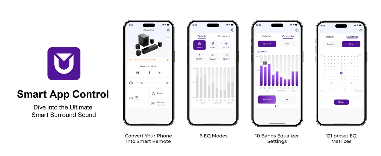 Constructed with high-quality materials for durability and performance, the soundbar and its components are designed for easy setup and maintenance. Simply connect to your TV and power source, then use the accompanying app for seamless control. Regular dusting and keeping the speaker grills clear will ensure optimal sound quality over time. Compatible with a wide range of TV models and audio devices, the ULTIMEA soundbar is a versatile addition to any home audio setup.