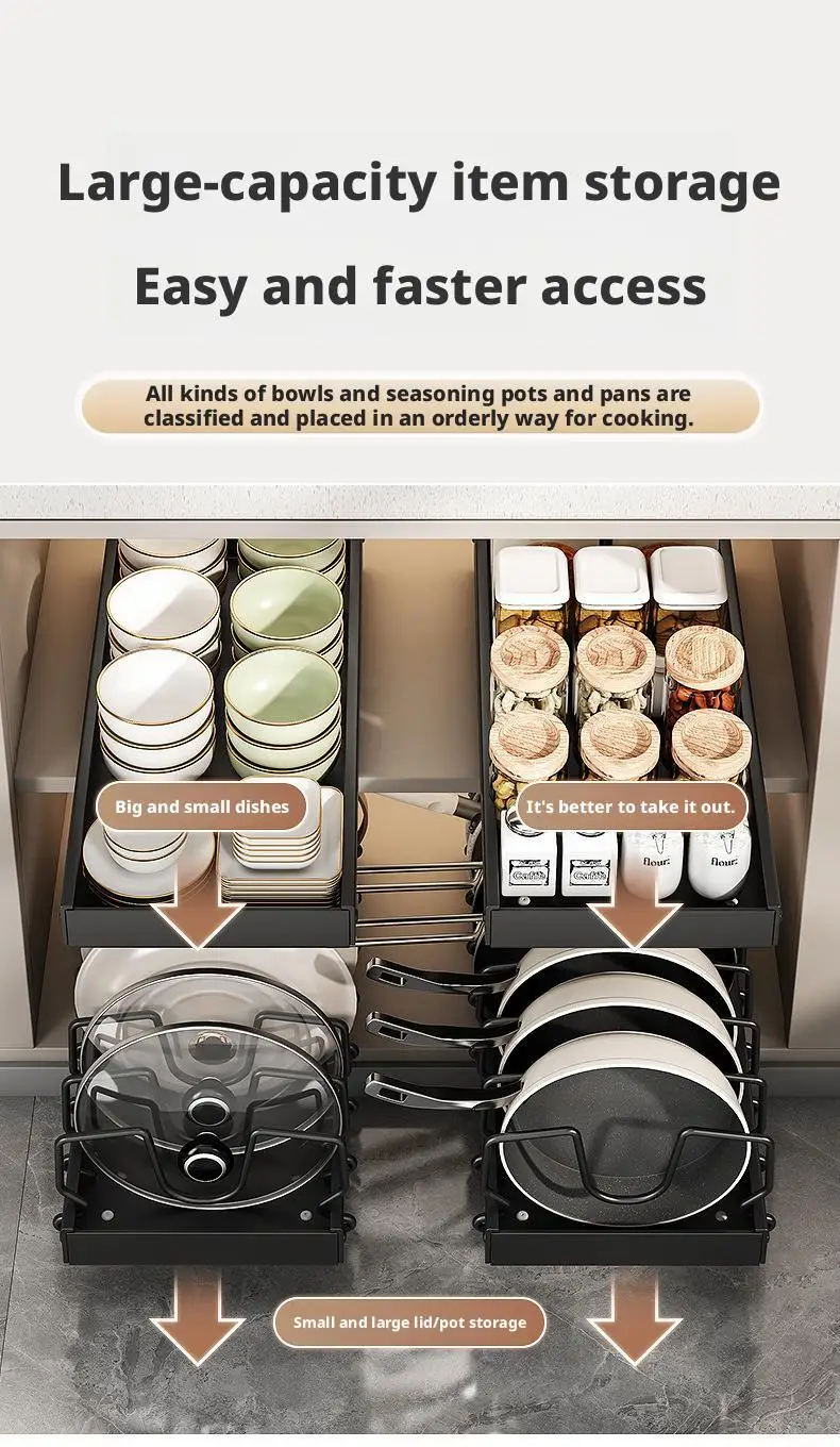 – Sliding Mechanism: Smoothly slides in and out, providing easy access to your pot lids and pans.