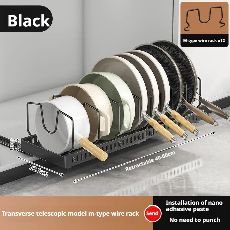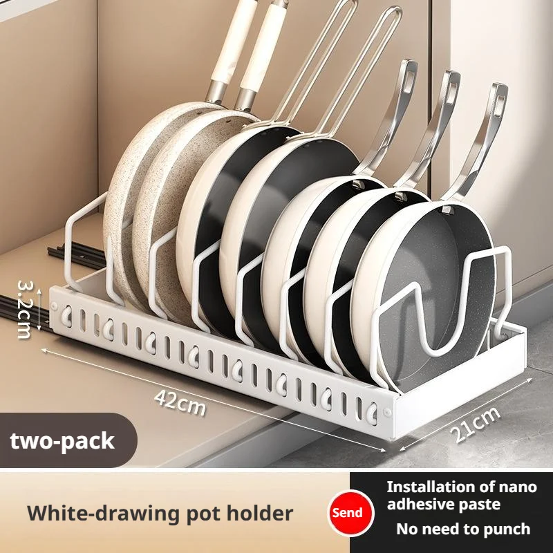 Under Cabinet Sliding Pot Lid Storage Holder Kitchen Adjustable Slide Out Dish Pan Storage Rack Shelf Pots and Pans Organizer