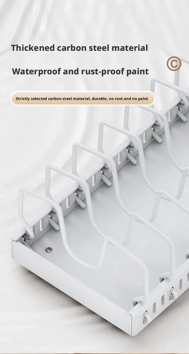 Tired of rummaging through cluttered cabinets to find the right pot lid or pan? Reclaim your kitchen space and bring order to your cookware with our Under Cabinet Sliding Pot Lid and Pan Organizer! This innovative storage solution maximizes your cabinet space, making it easier than ever to access your essential cooking tools.