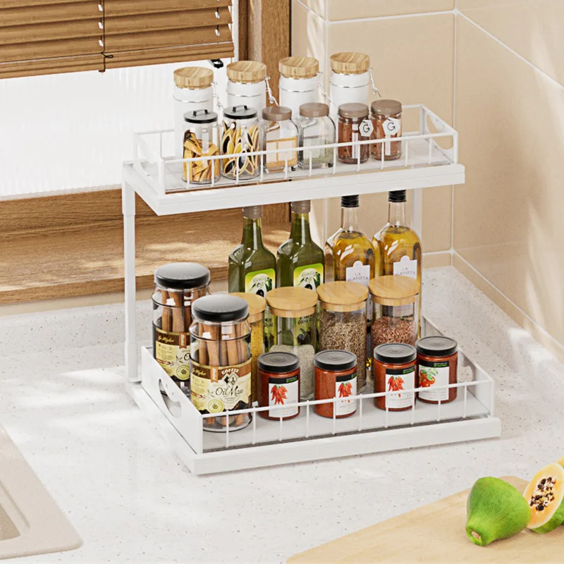 h1Under Sink Two-Level Sliding Pull-Out Shelf Cabinet Basket Storage Rack Organizer