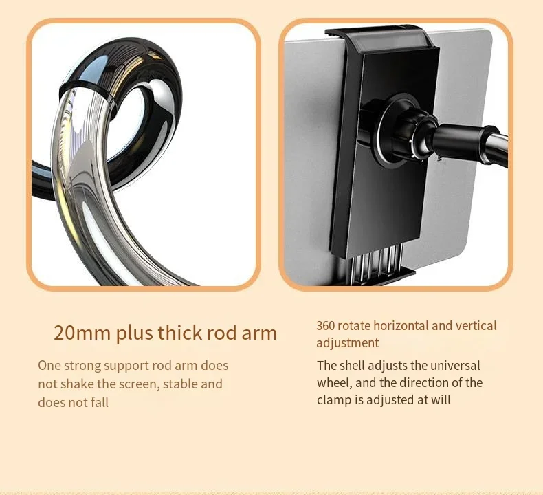 This mobile phone holder enhances your daily routine by enabling comfortable, hands-free use of your device. It reduces neck and hand strain by allowing you to adjust viewing angles precisely. Perfect for multitasking, it frees your hands while cooking, working, or relaxing. The flexible arm ensures that you can position your phone for the best visibility whether you are lying down or sitting upright. Its universal compatibility makes it an ideal accessory for any smartphone user.