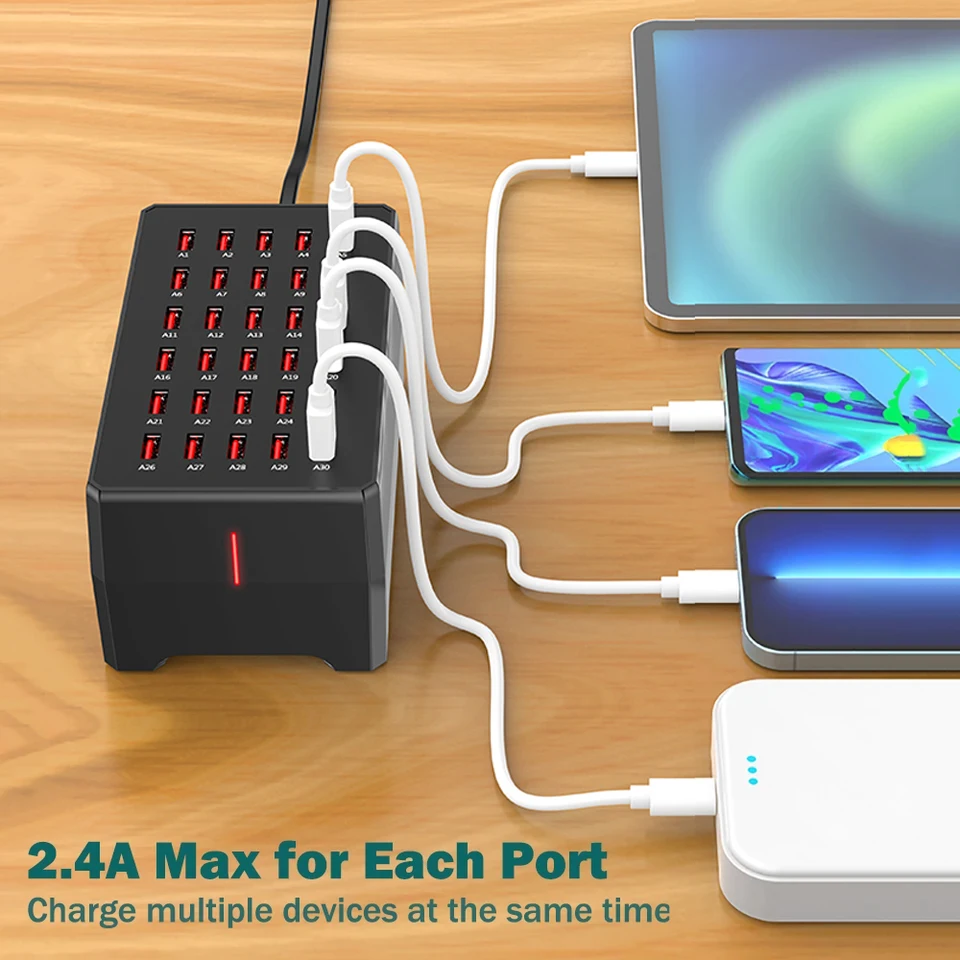 USB Charger 12/30 Ports Universal Wall Desktop Fast Charging Station Dock for Mobile Phone Power Adapter