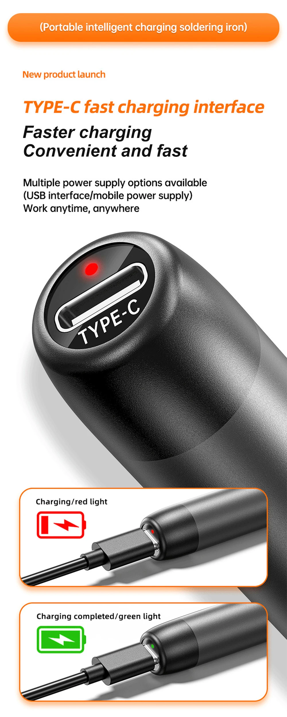 Introducing the ultimate solution for on-the-go electronics repair and hobbyist endeavors. This Mini Soldering Iron Set, featuring a convenient Type-C interface and a digital display, offers unparalleled precision and portability. Whether you’re a seasoned technician or a budding maker, this compact yet powerful tool is designed to elevate your soldering experience. Say goodbye to bulky, wired soldering stations and embrace the future of portable electronics repair.