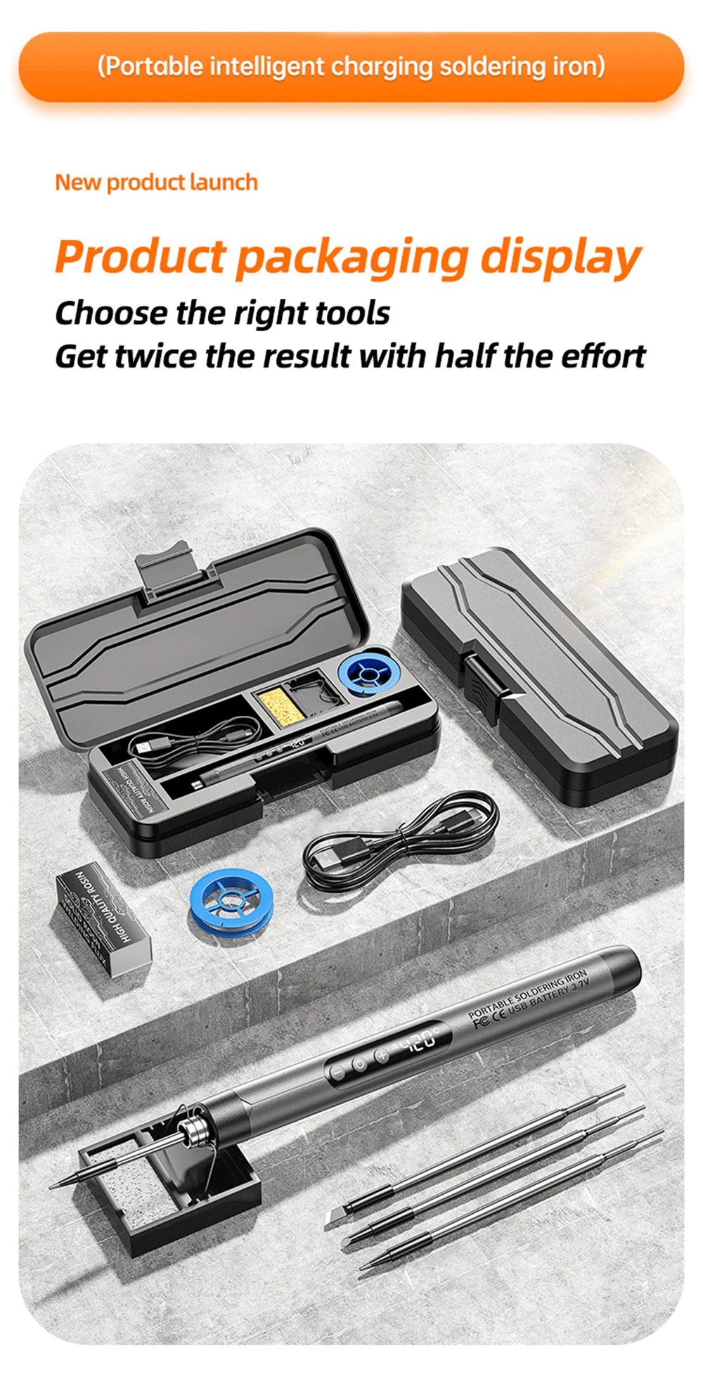 This USB Soldering Iron Set is your indispensable companion for a wide range of electronic tasks. Its adjustable temperature control makes it ideal for intricate circuit board repairs, DIY electronics projects, prototyping, and even hobbyist crafting. The digital display provides real-time temperature feedback, ensuring you always maintain the correct heat for clean, strong solder joints without damaging sensitive components. The USB Type-C power source means you can power it up virtually anywhere, from your workbench to a coffee shop or even during a camping trip with a power bank. Its small footprint and lightweight construction make it a joy to use, reducing fatigue during extended soldering sessions.