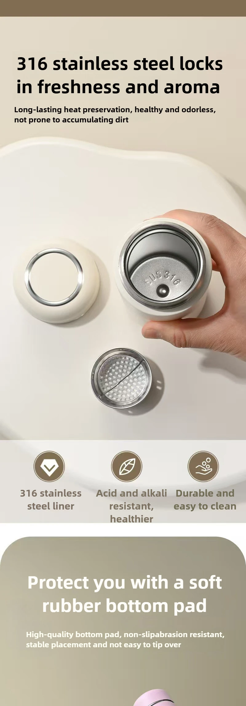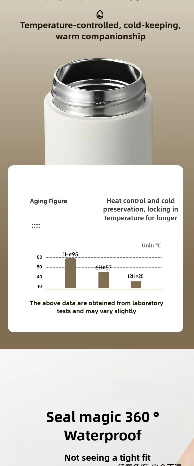• Advanced Vacuum Insulation: Double-wall vacuum insulation technology creates an airless space between the inner and outer walls, effectively preventing heat transfer and keeping beverages hot for up to 12 hours or cold for up to 24 hours.