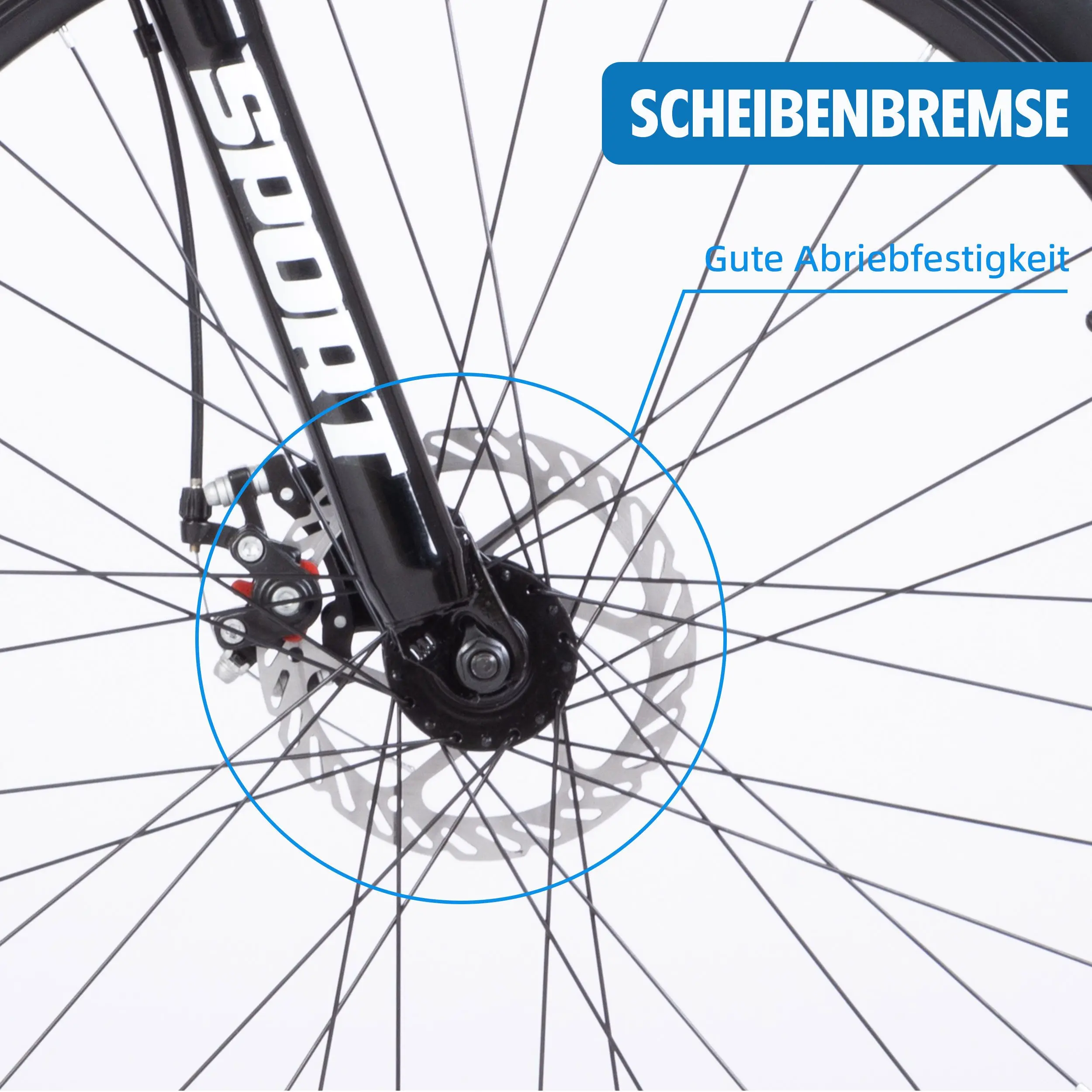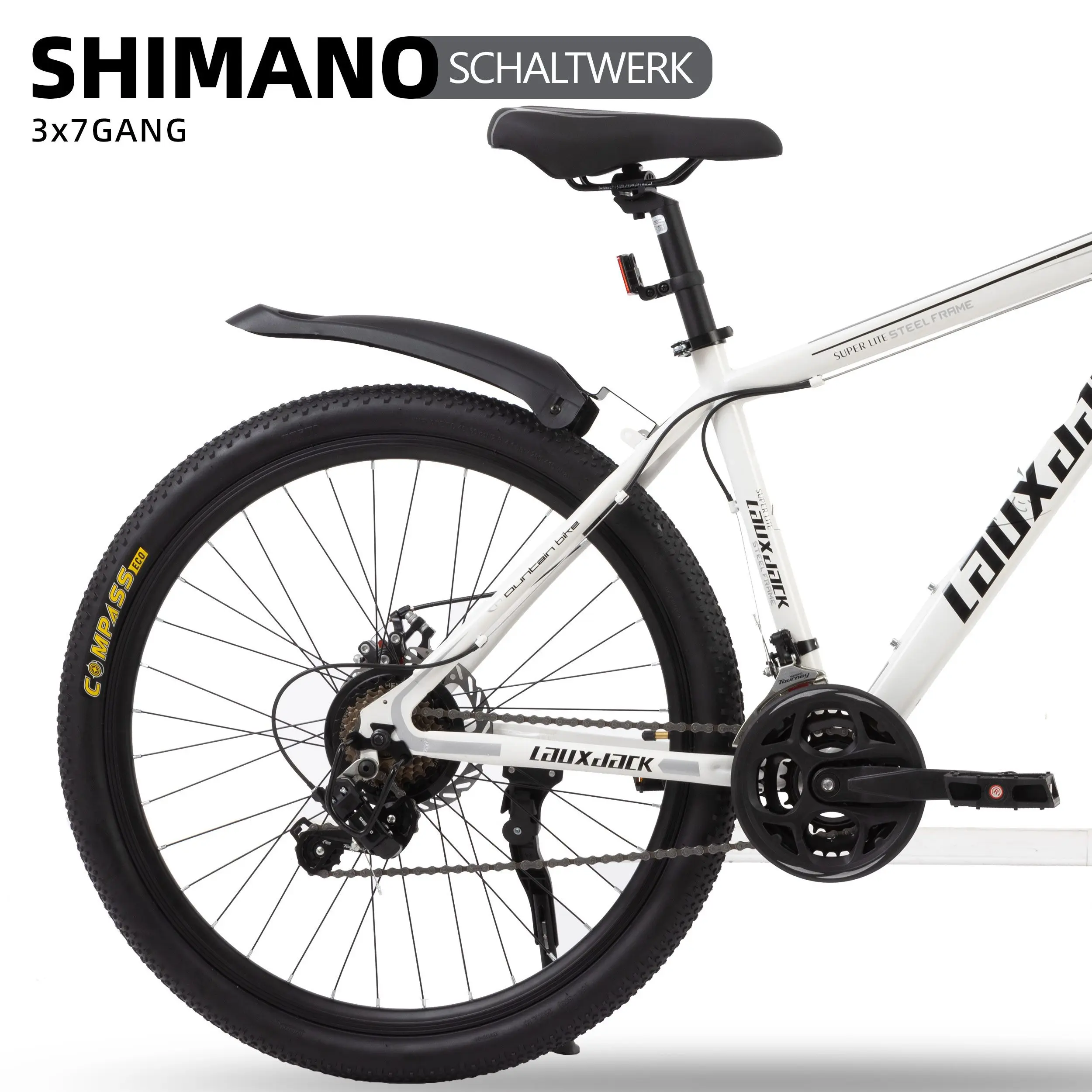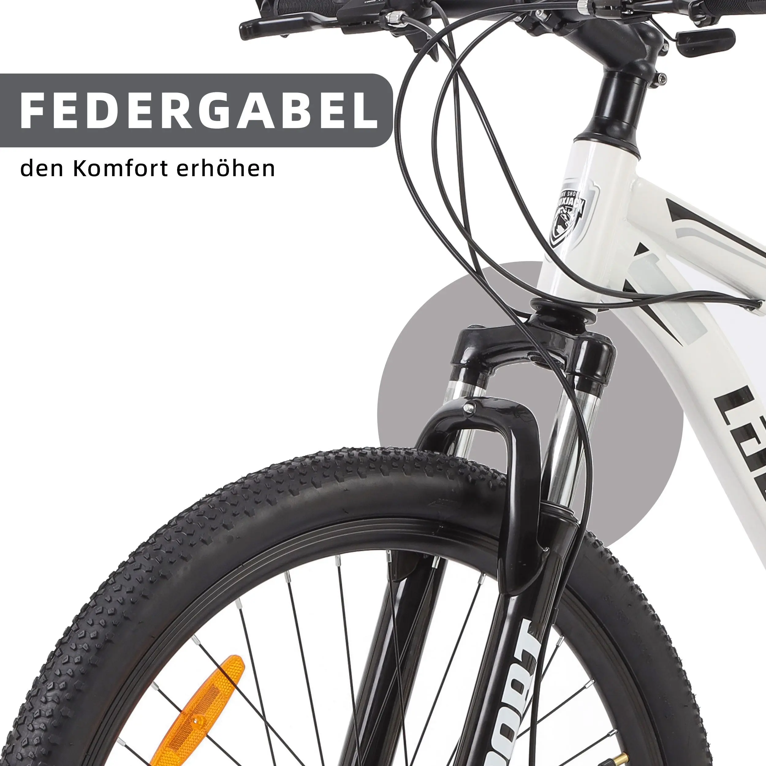 Vankel 26'' Mountain Bike offers kids ages 6-14 a durable, high-performance ride with 21-speed Shimano gears and reliable disc brakes. Designed for teenage riders, this sleek black and white MTB ensures smooth control and safety on all terrains. Ships from Germany for fast delivery.
