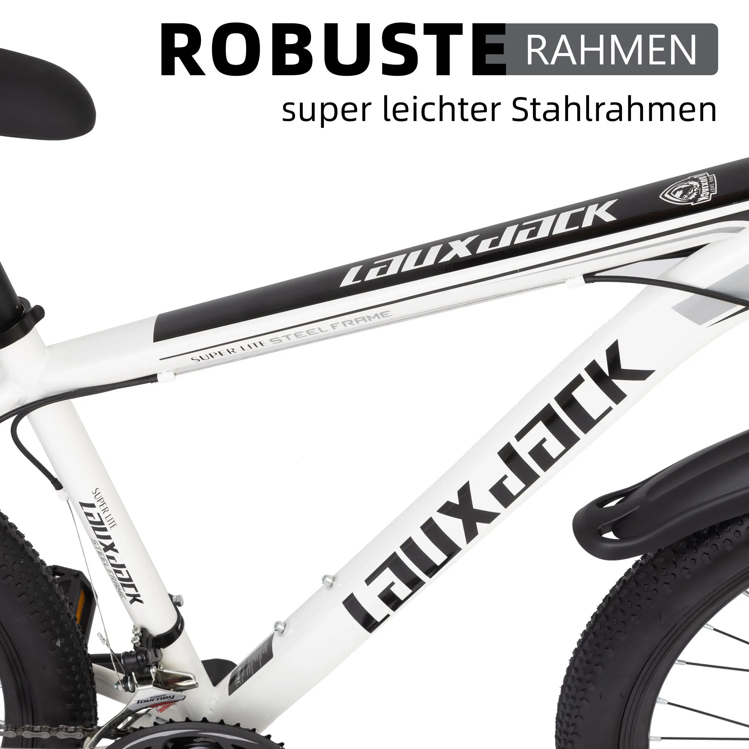 – Robust 26-inch frame available in sleek Black and White, catering to youthful tastes and durability.