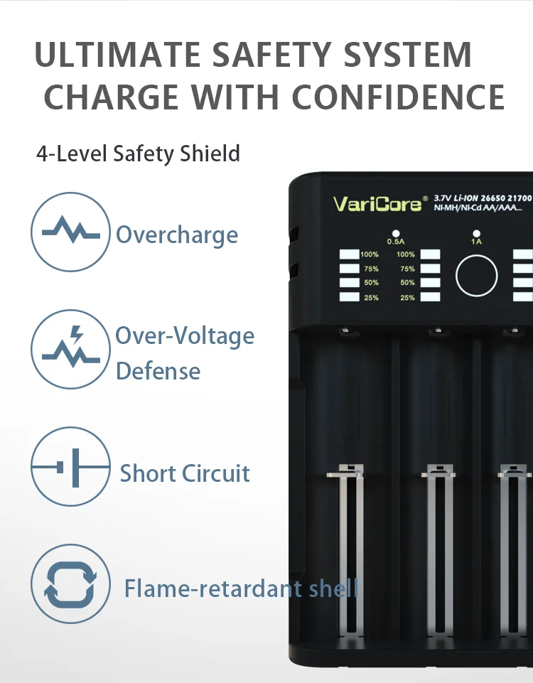 Reliable, Smart, and Compatible Charger for 18650, 21700, 26650, and 18350 Batteries
