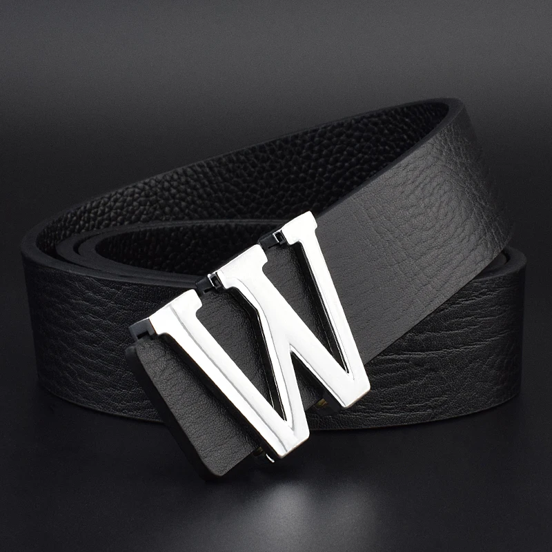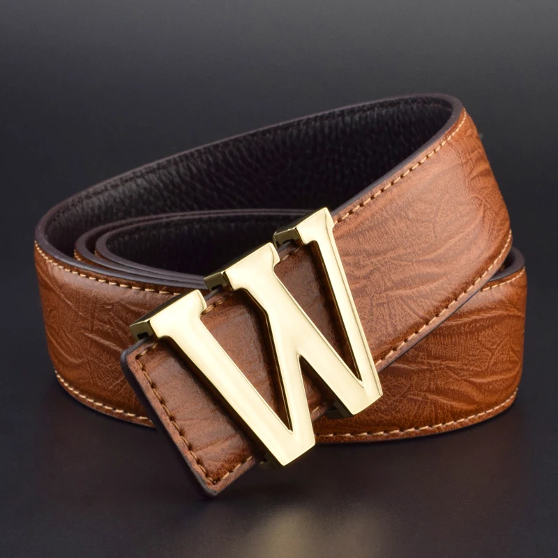 W Letter Gold Men’s Belts Luxury Genuine Leather Brand