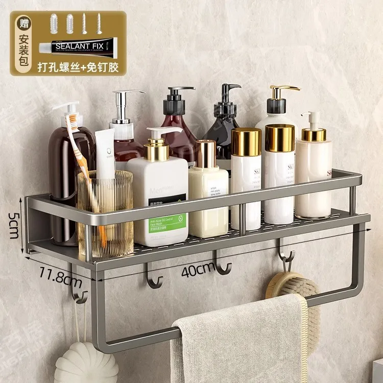 Declutter your space effortlessly! This no-drill wall rack offers versatile storage for your bathroom, kitchen, or balcony. Strong, stylish, and easy to install. Get organized now!
